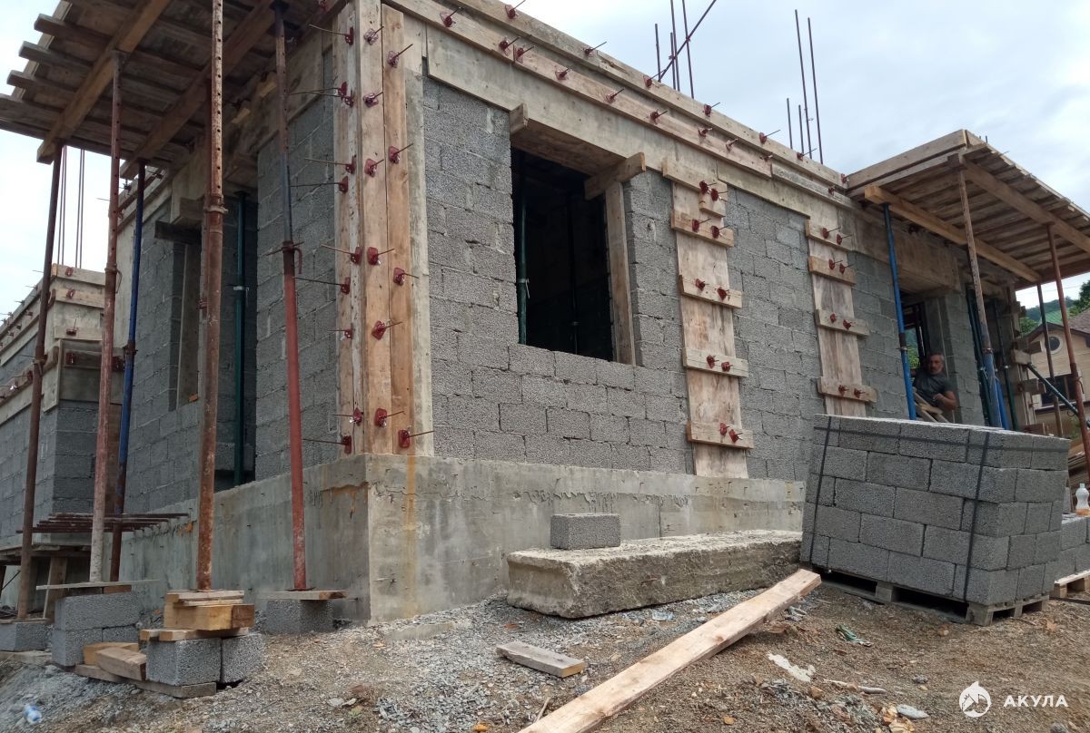 Материал дома – монолит с блочным заполнением.