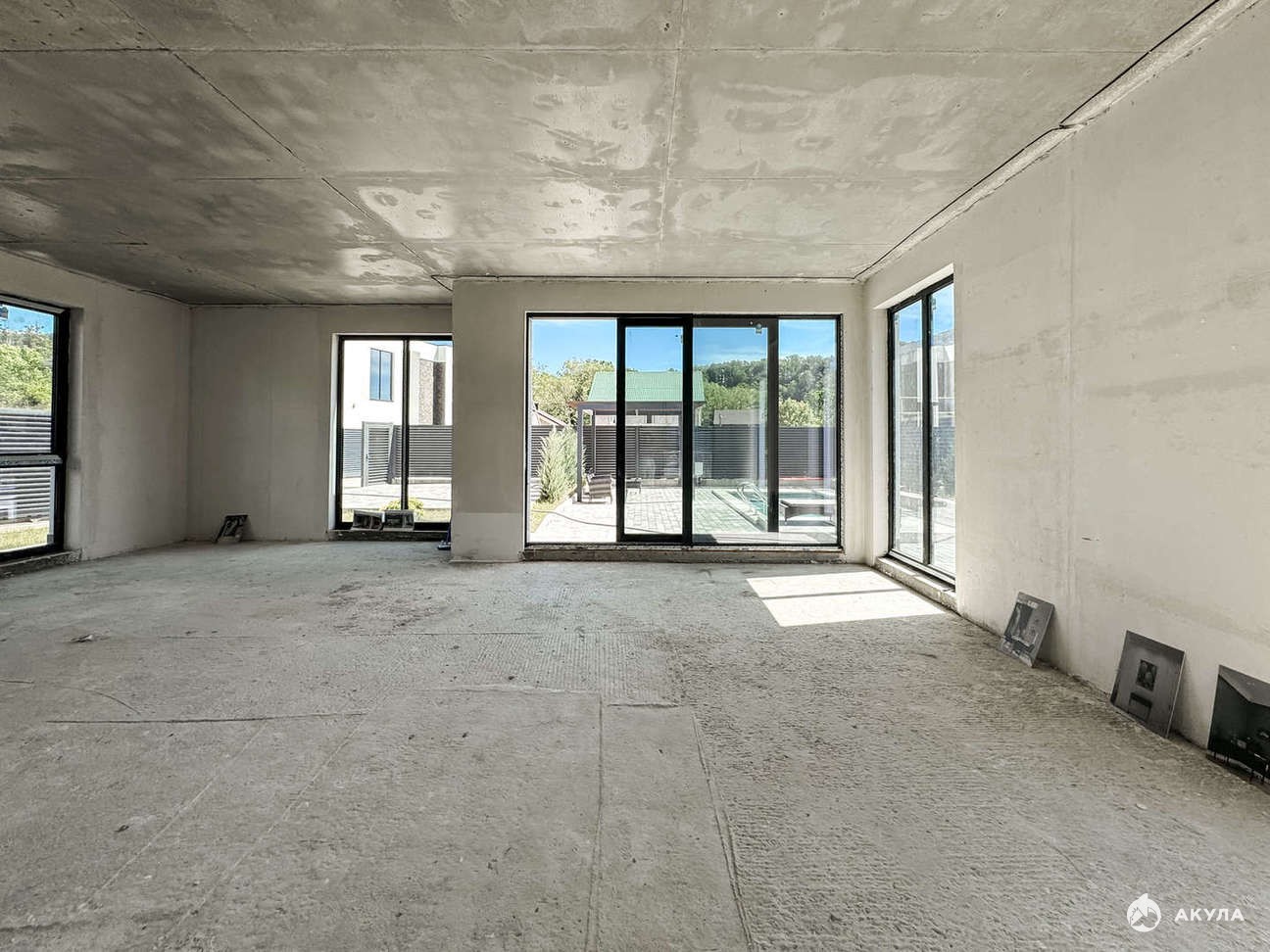 Дом площадью 200 квадратных метров, включает 2 этажа с удобной свободной планировкой, которая позволяет организовать просторную кухню-гостиную с панорамными окнами и выходом на территорию и три спальни.