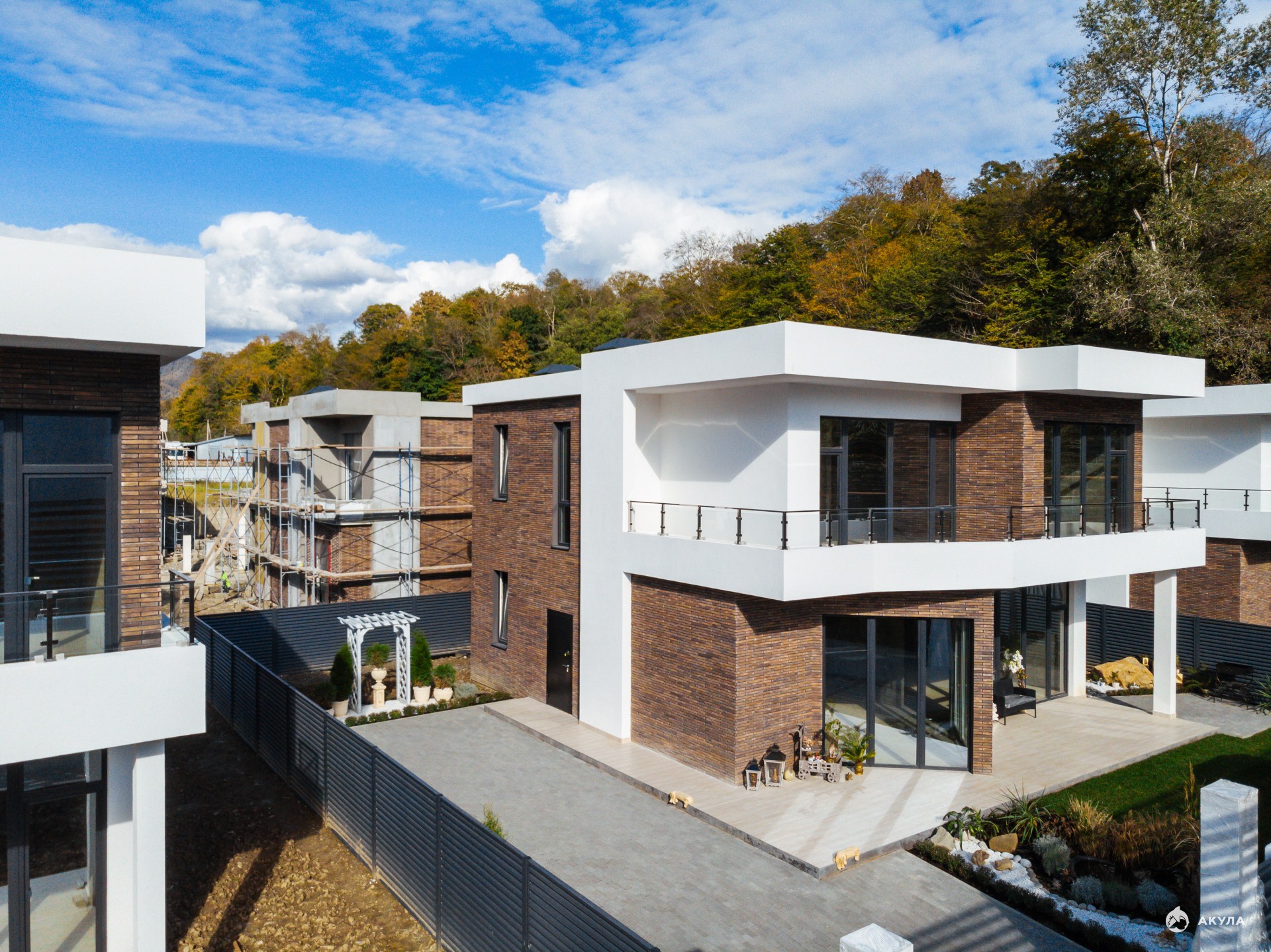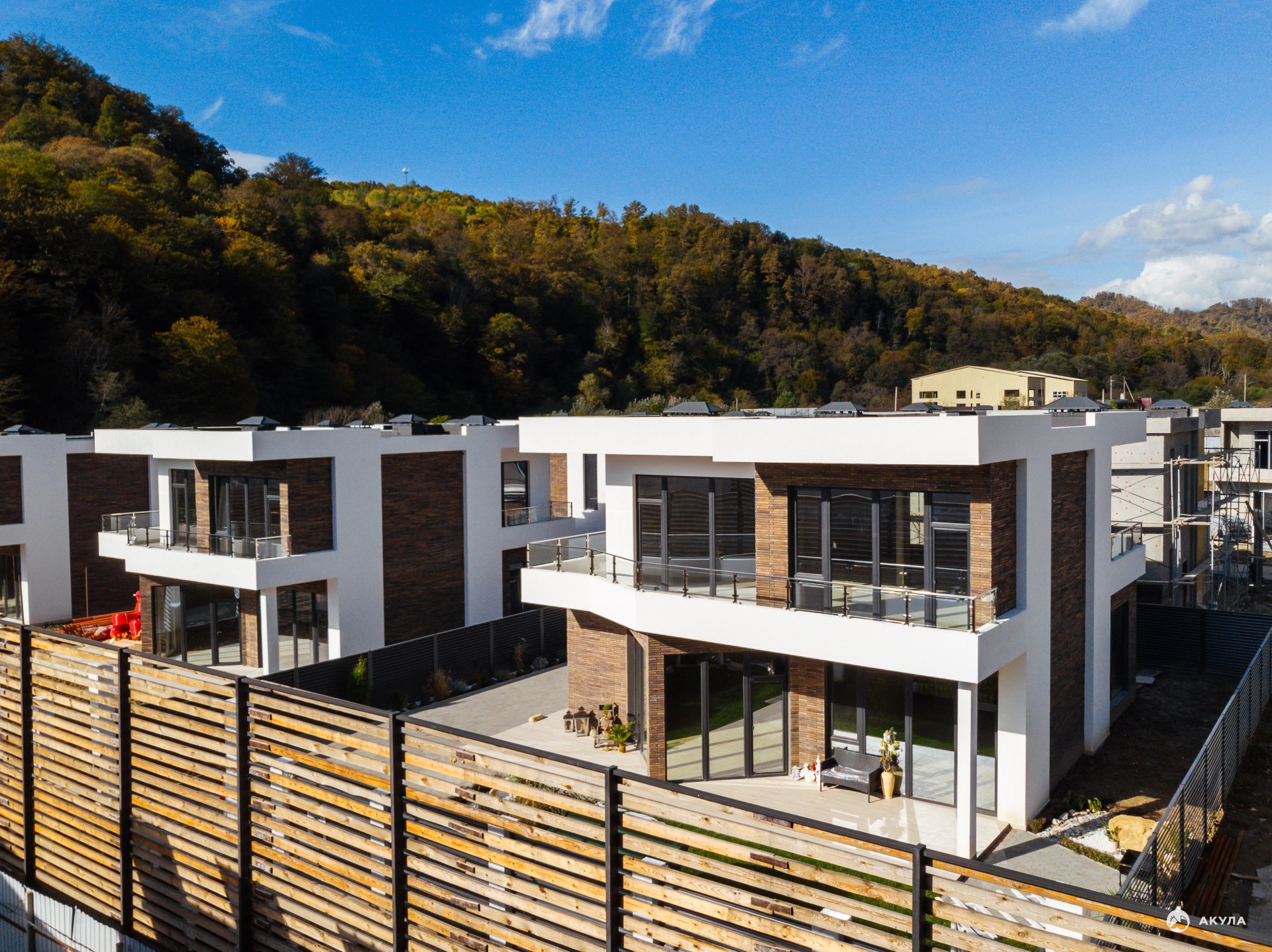 центральными коммуникациями. Закрытая территория у каждого дома с ландшафтным озеленением и прекрасными видами на горы.