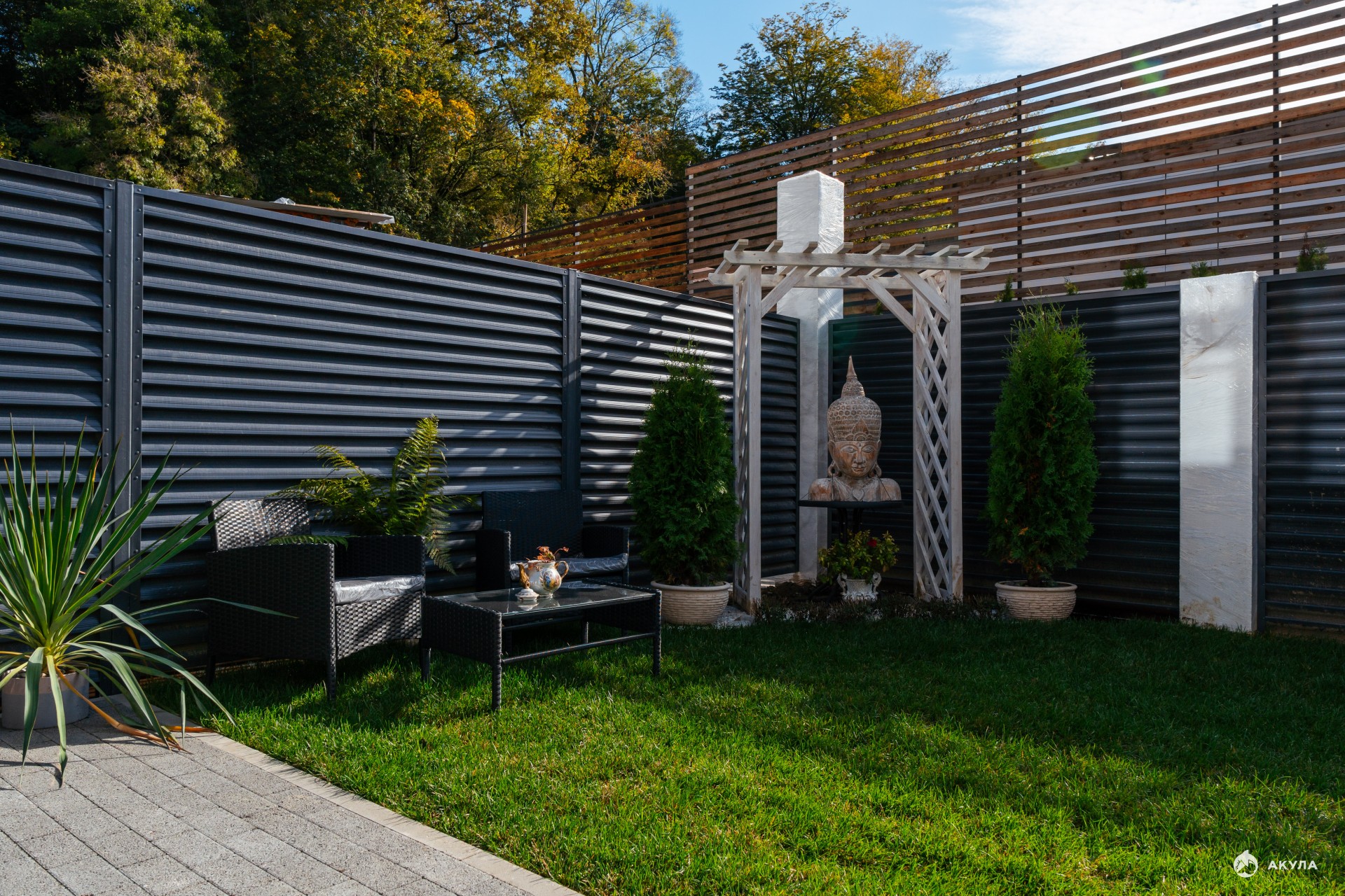 • Продуманное ландшафтное озеленение,