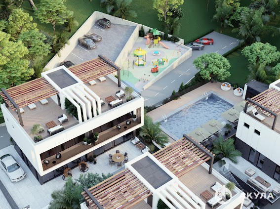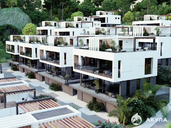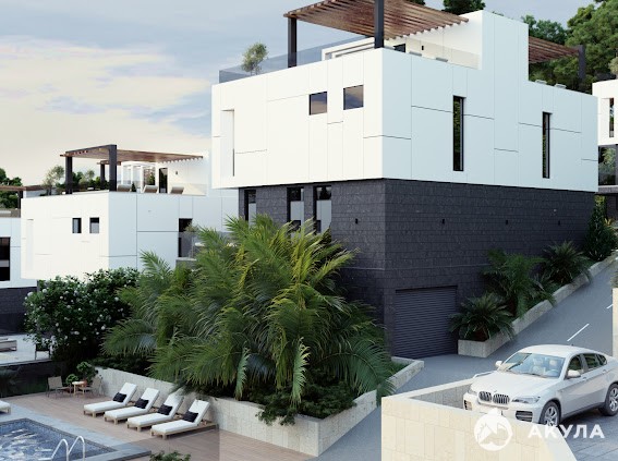 Комплекс состоит из 34х вилл в hi-tech стиле.