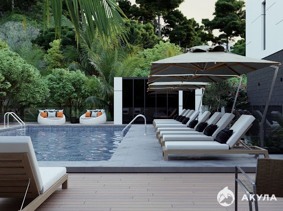 — эксплуатируемая кровля с дизайнерскими перголами;