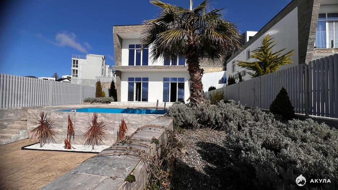 Продаётся современный двухэтажный дом в стиле Хай-Тек в новом коттеджном поселке, с собственным бассейном, панорамным видом на море и горы. Участок 6 соток. Локация — идеальный баланс тишины и городской инфраструктуры.