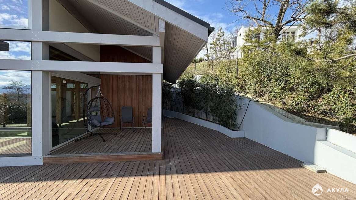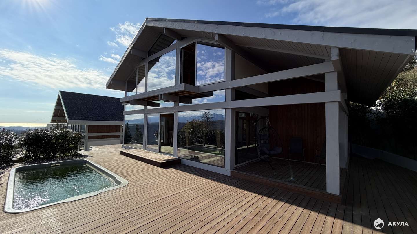 Продам дом с панорамным видом на заснеженные вершины горы Арабика и на море.