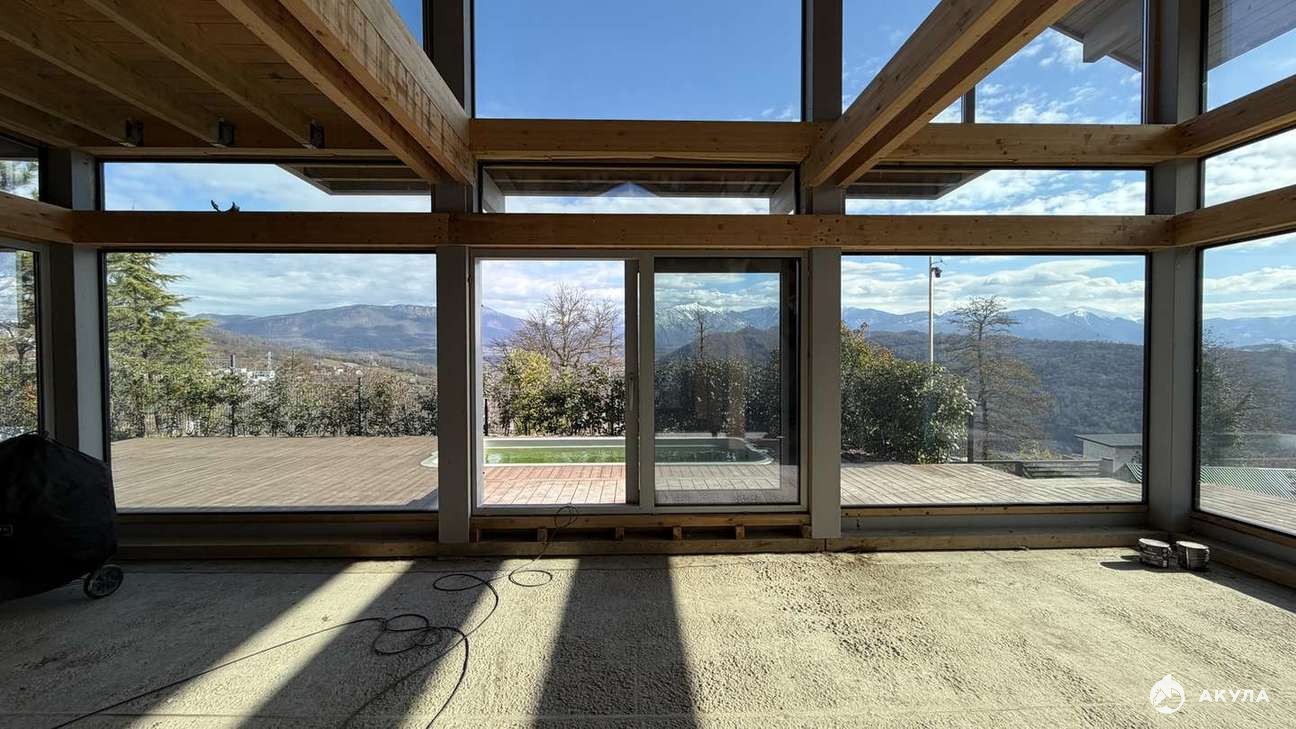 Витражное остекление, свободная планировка, позволяет разместить 4 спальни и гостиную с кухней в вашем новом доме.
