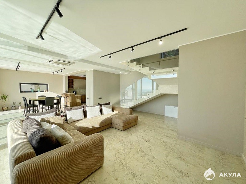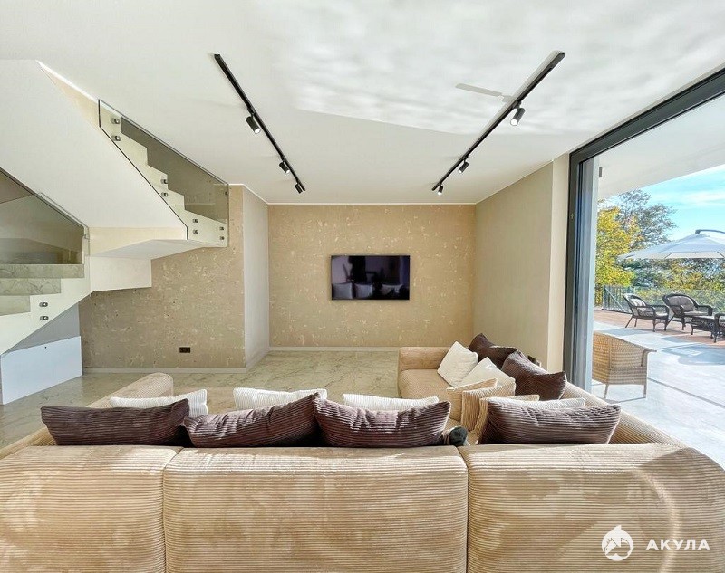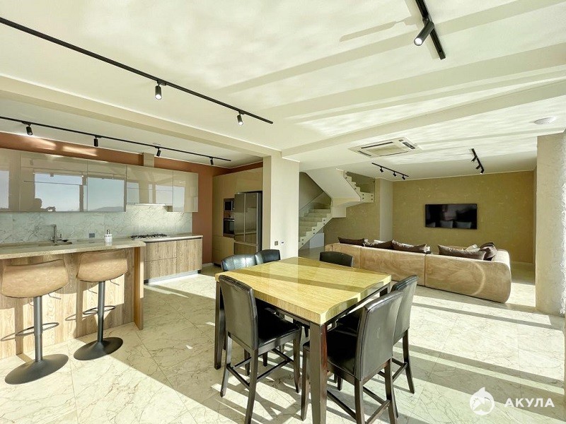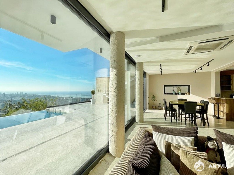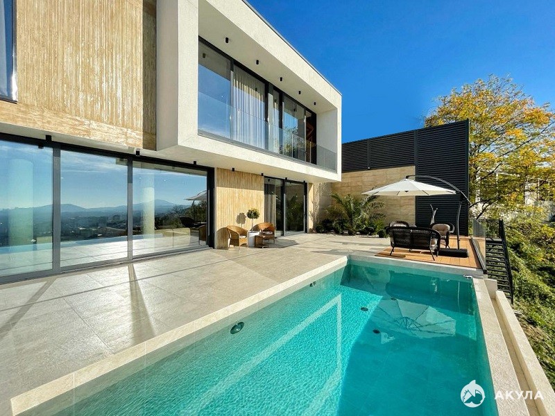 Дом площадью 250 кв.м., с эксплуатируемой крышей, полностью оборудованный всей необходимой мебелью и техникой. Планировка: 1 этаж: кухня-гостиная, спальня, санузел. 2 этаж: 3 спальни, 2 санузла. Из окон открывается красивый вид на город и море. Коммуникации все центральные. Земельный участок 4 сотки. На территории установлено видеонаблюдение, имеется парковка, бассейн с подсветкой и подогревом и зона отдыха. Документы на право собственности в наличии.