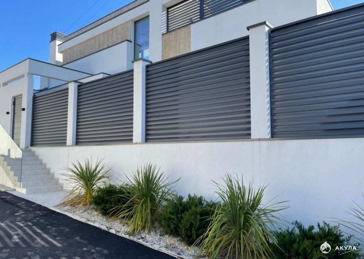 Площадь участка 4 сотки, дом вписан в окружающий ландшафт таким образом, что визуально пространство кажется гораздо большим чем оно есть на самом деле.