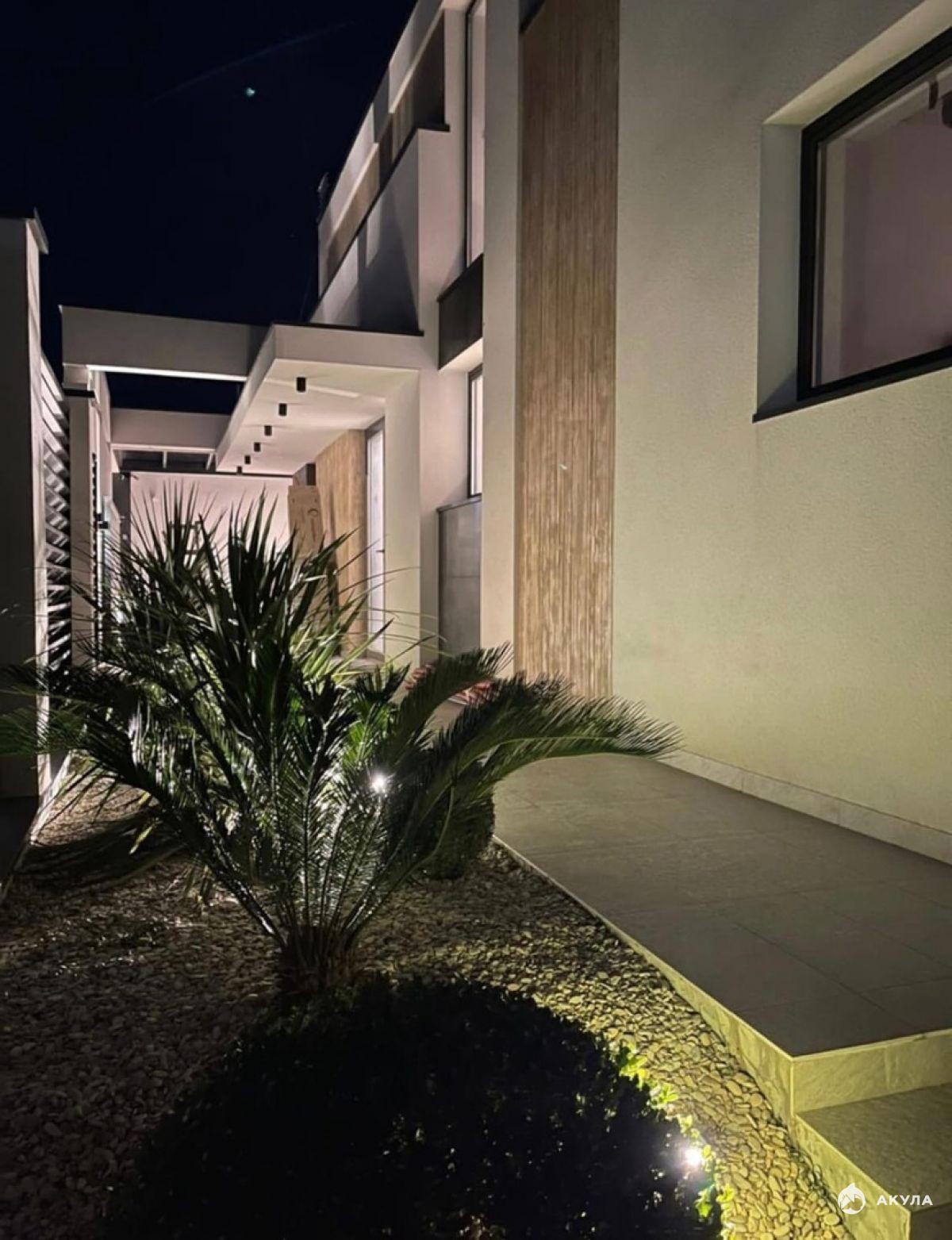 На территории высажены туи, мандарины и пальмы, газон. Установлен автополив. На территории расположен круглогодично подогреваемый бассейн. Установлена охранная система с датчиками движения, открытия, закрытия окон. Видеонаблюдение по всему периметру участка.