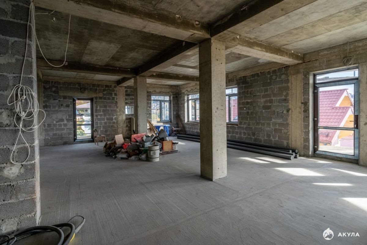 3 этажа и 1 цокольный этаж свободной планировки, можно использовать под гараж, где свободно поместится 4 авто.