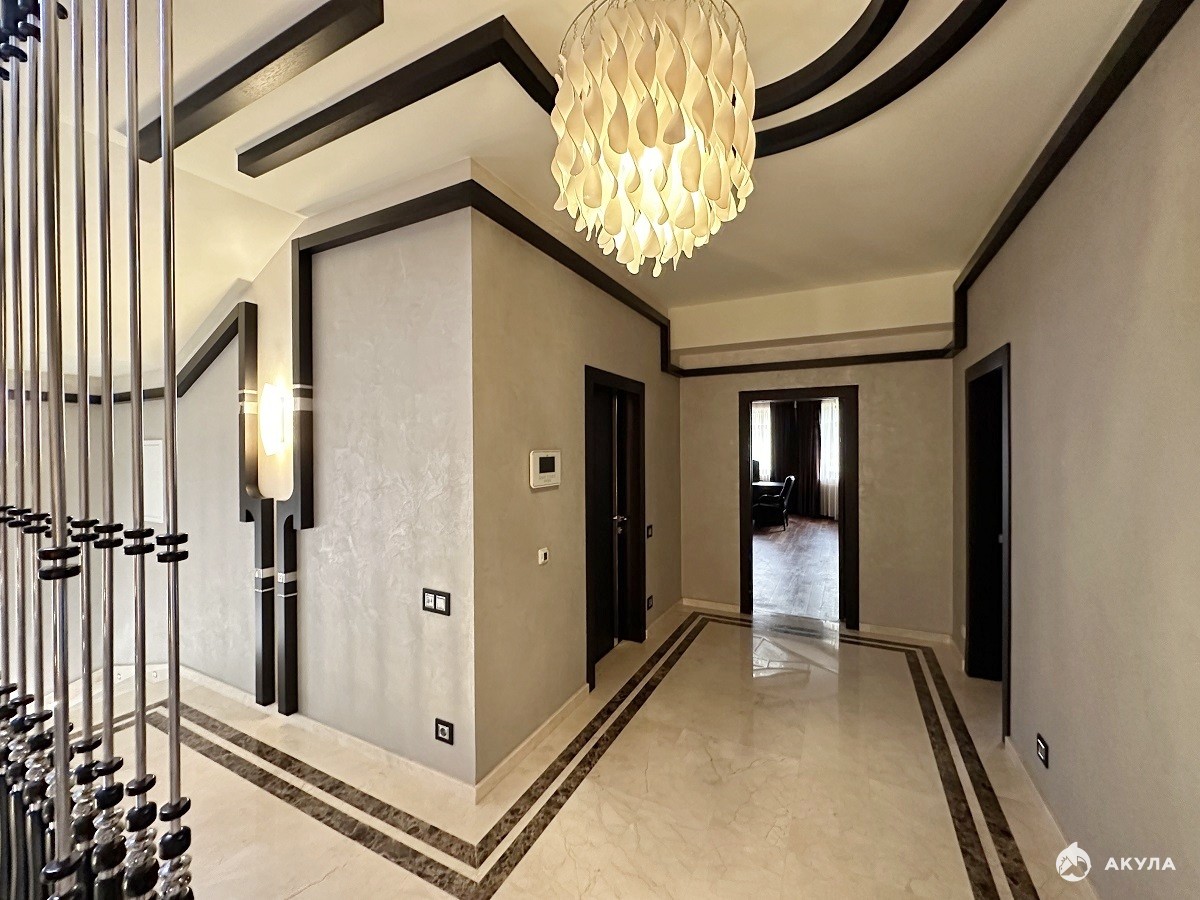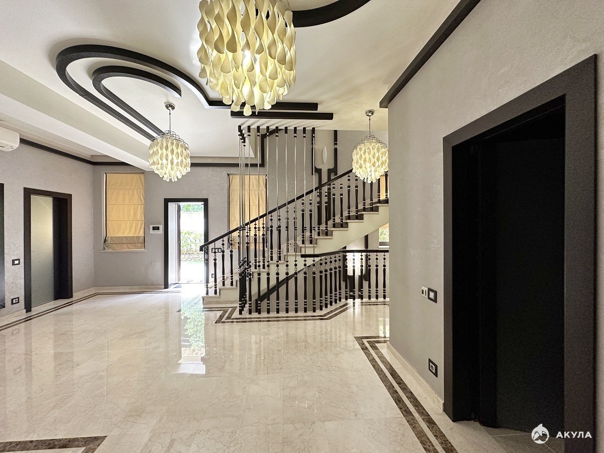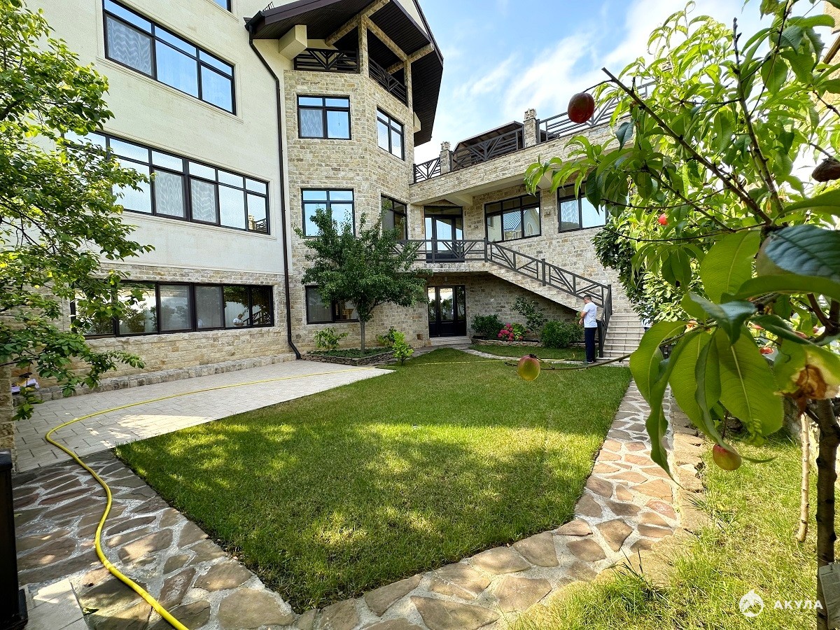 На территории в 8 соток можно полюбоваться искусно созданным ландшафтом, зонами для отдыха, искусственным миниатюрным водопадом. На открытой террасе, на которую вы попадете с четвертого этажа, находится мангал и удобная мебель.