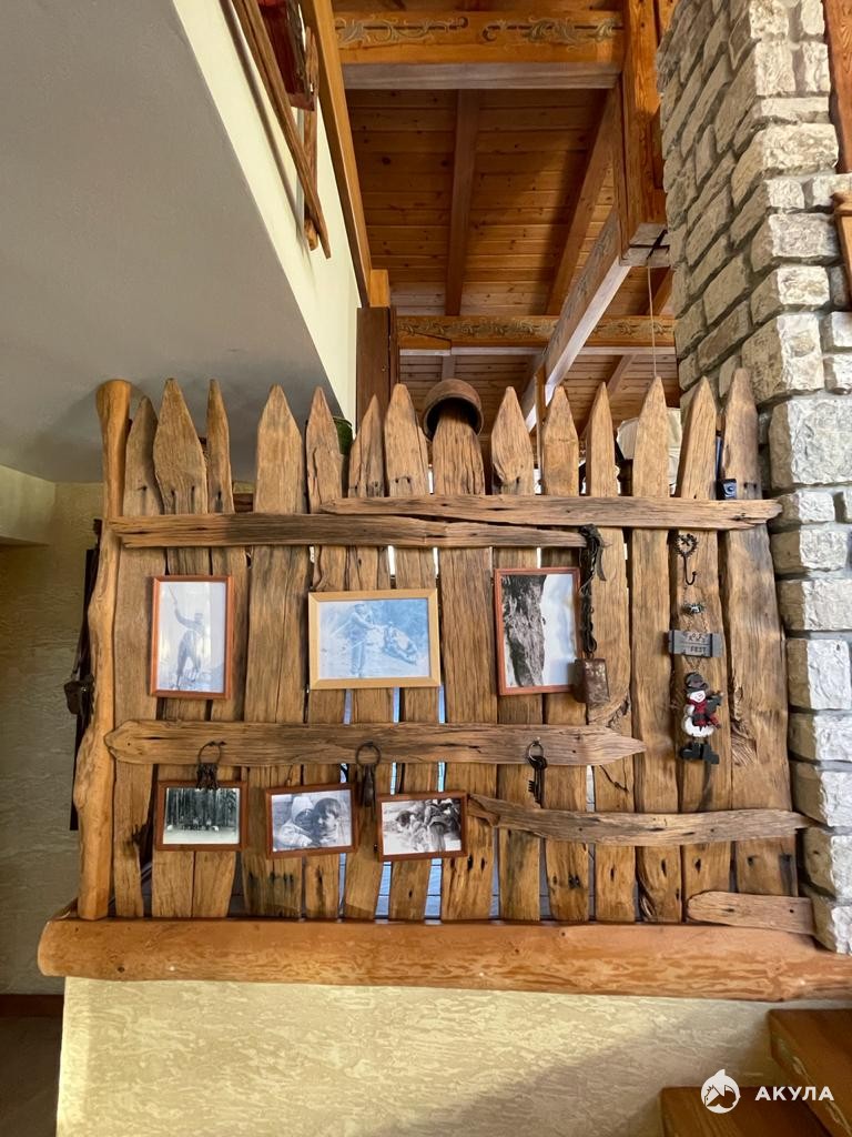 На втором этаже: кабинет, раздельный санузел; большая комната с двуспальной кроватью, собственным санузлом и гардеробной; комната с односпальной кроватью с балдахином и выходом на балкон; комната с двух-ярусной кроватью и выходом на балкон. И в каждой комнате открывается неописуемый вид на горы.
