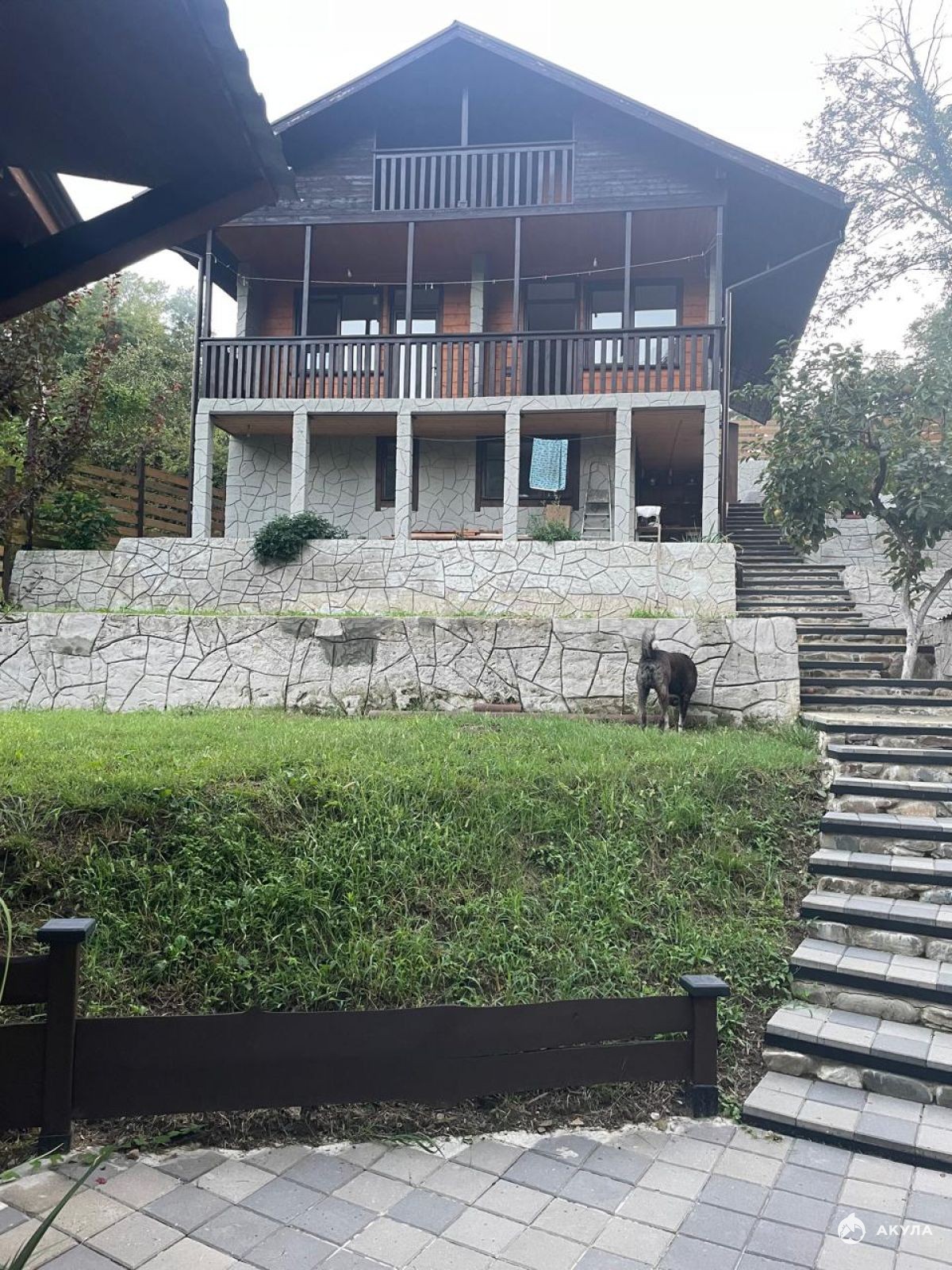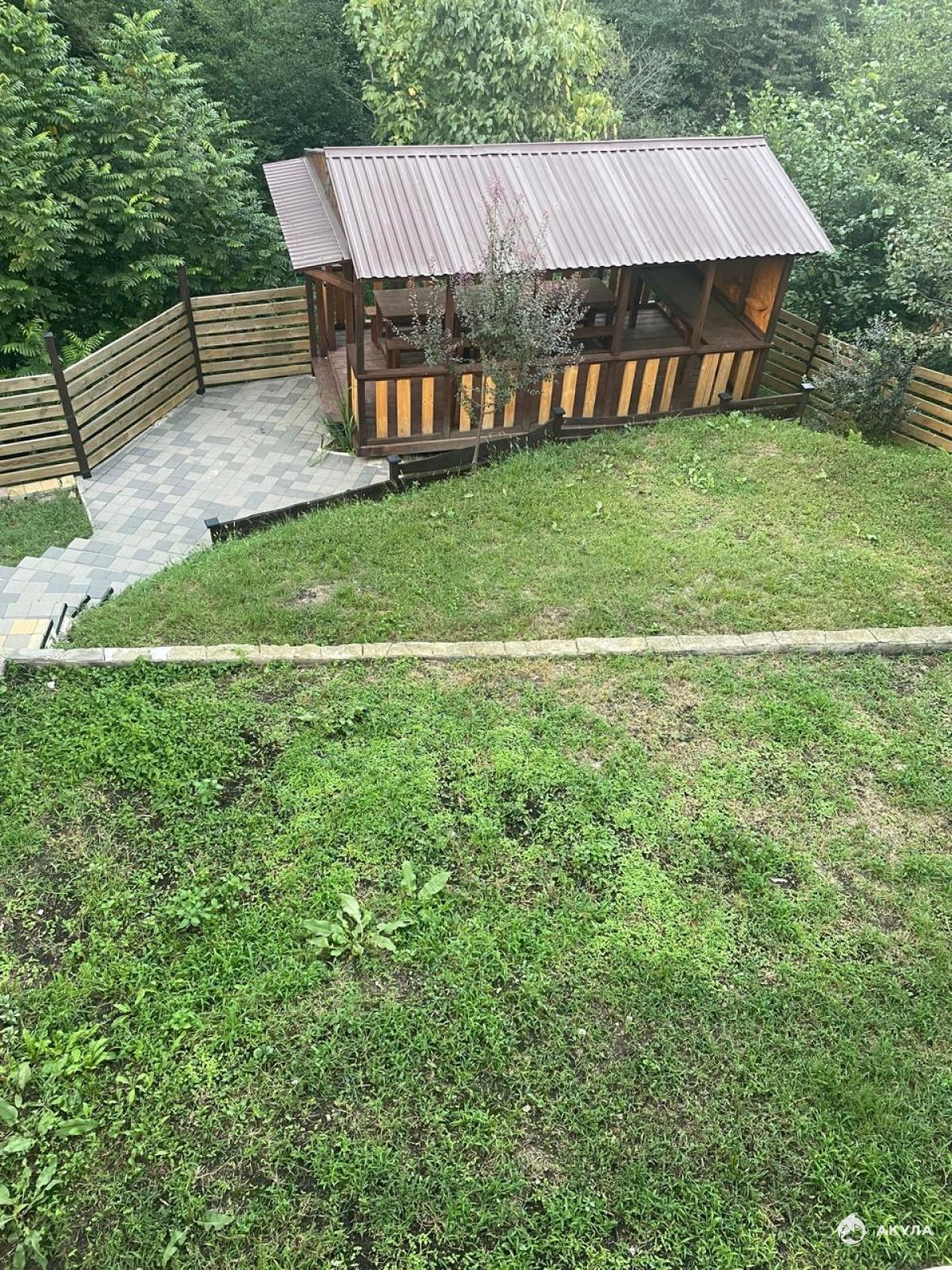 Двор разделен на несколько зон, наверху есть просторная парковка для двух машин.Номер объекта: #5/603091/11901