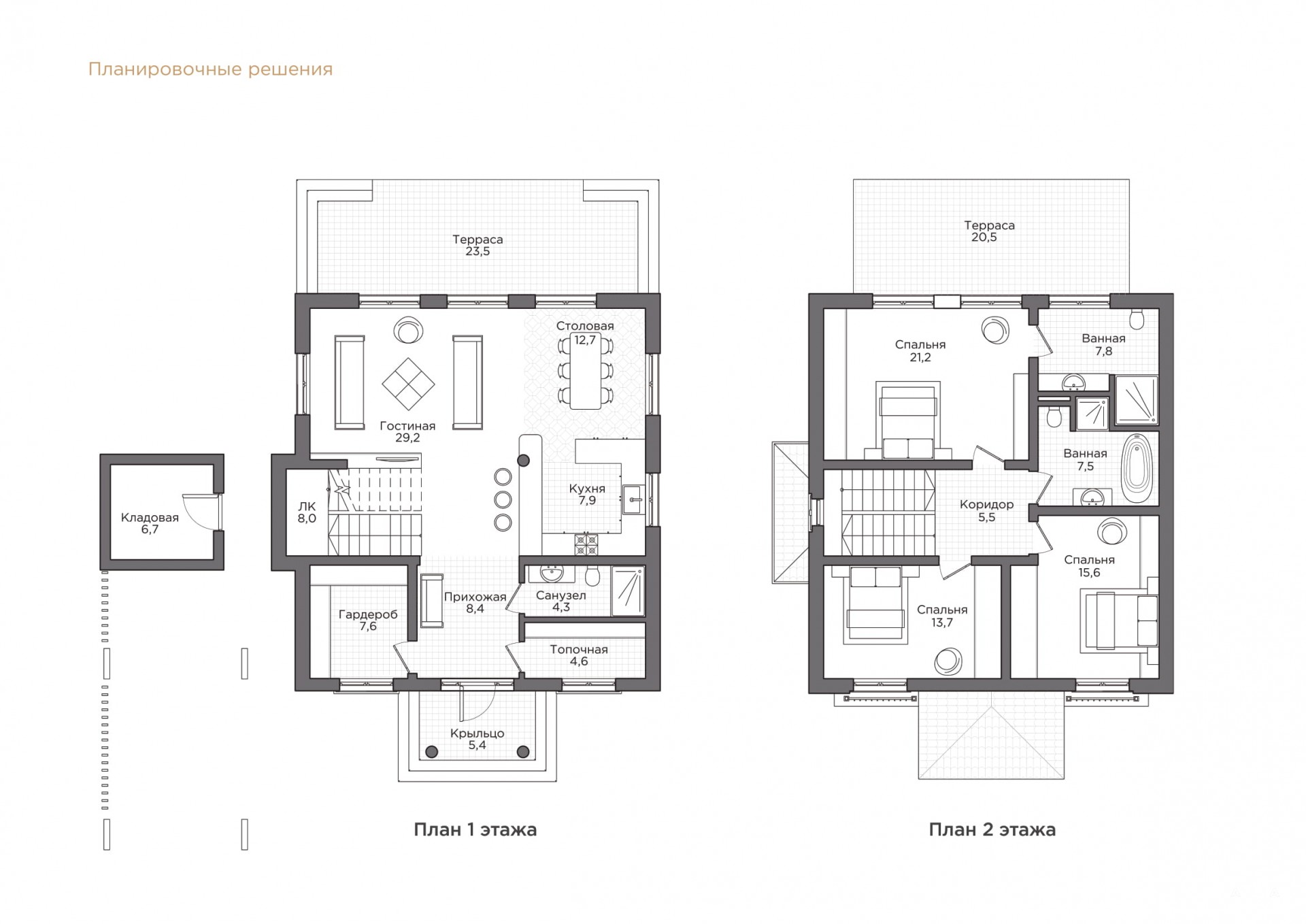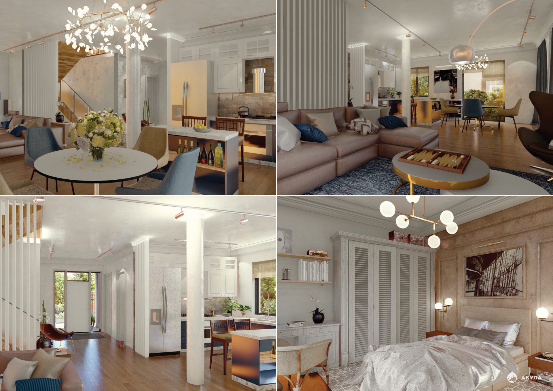 Все дома в поселке объединены единой архитектурной концепцией — «неоклассика». Здания отличают современная архитектура и надежные монолитные конструкции. Коттеджи построены с применением качественных технологий и натуральных материалов. На территории каждого дома выполнен ландшафтный дизайн.