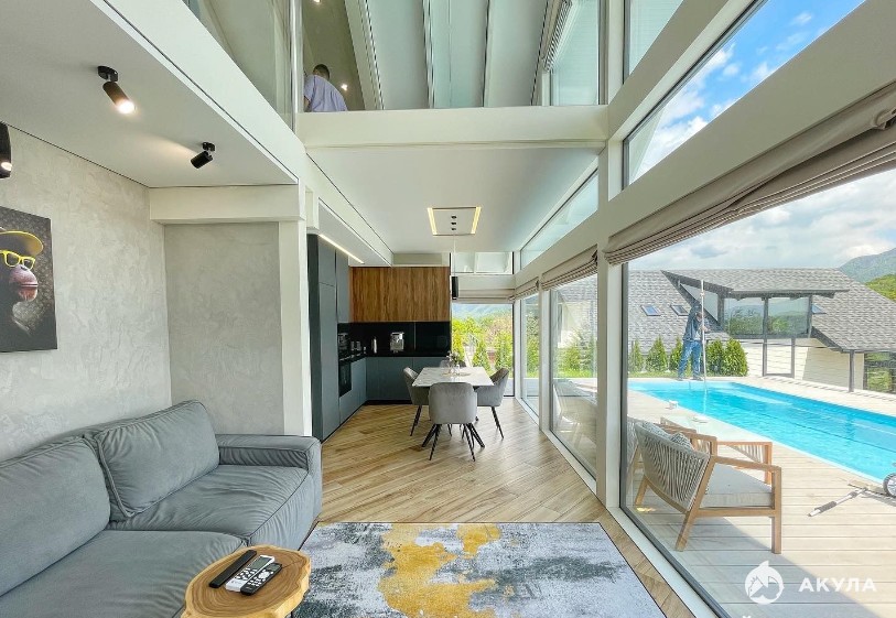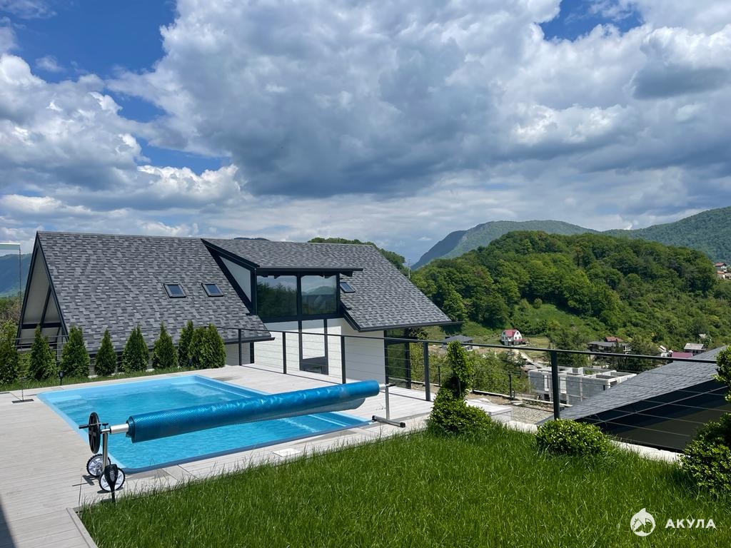 Продается дом в с. Галицыно Адлерского района Сочи, энергоэффективный фахверк, основа конструкции - опорно-балочная система из качественного сертифицированного клееного бруса 160х200 мм (обработан огнеупорной защитой, защитой от плесени и гниения), бронебойные стеклопакеты Guardian Glass, утеплитель PIR (ГОСТ 56590-2016), мягкая кровля, есть возможность сделать озеленение кровли с помощью рулонного травяного газона. Дом с внутренней отделкой, без мебели, в отдельном строении оборудована сауна. Коммуникации: электричество 15 кВт, водоснабжение центральное, канализация "ТОПАЗ", газ по границе. Асфальтированный подъезд к дому, участок террасирован, с ландшафтным дизайном. Великолепный вид на горы. Цена указана на этапе стройки, будет подыматься в соответствии с этапами строительства, в готовом виде стоимость будет 75 млн. руб. Номер объекта: #5/561461/11901