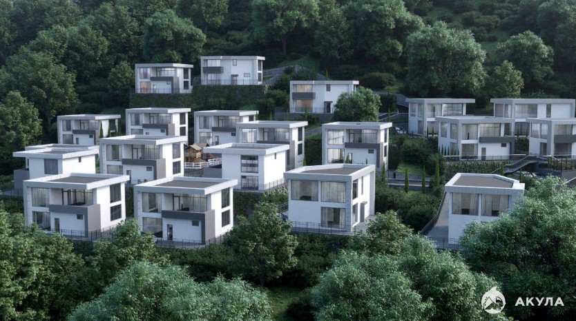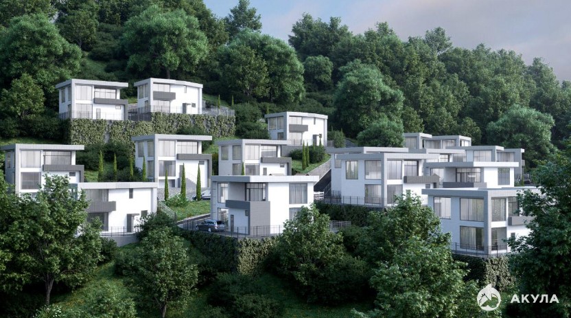Даже несмотря на то , что дома 2-х этажные , они имеют замечательные видовые характеристики. Посёлок расположен на границе с национальным парком , спереди Вас - море и город , сзади Вас - поют птицы .