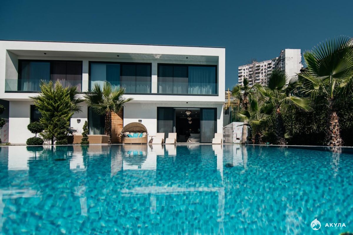 Новый дом в элитном коттеджном посёлке. Граничит с резиденцией президента Бочаров ручей. 500 метров море. 50 метров от дома лес. Центр города . Вид на море и лес.