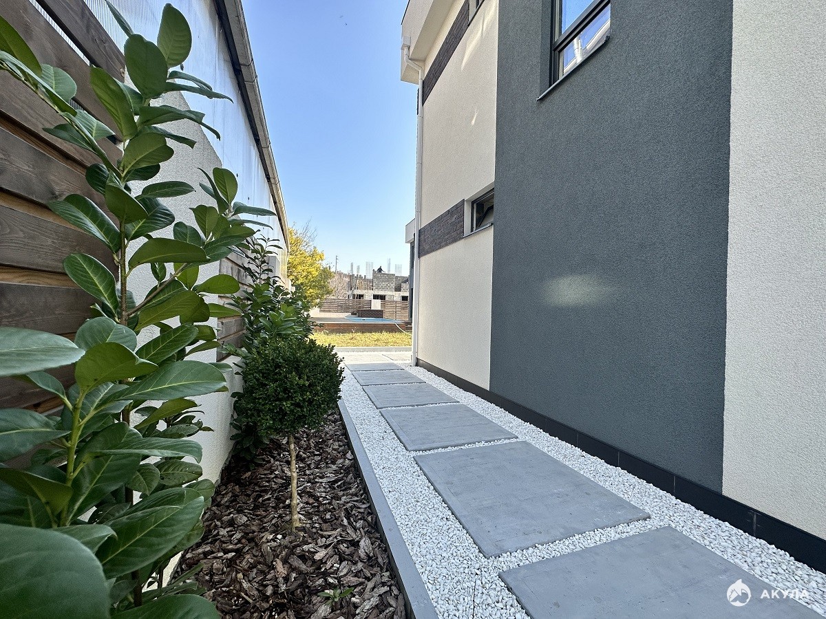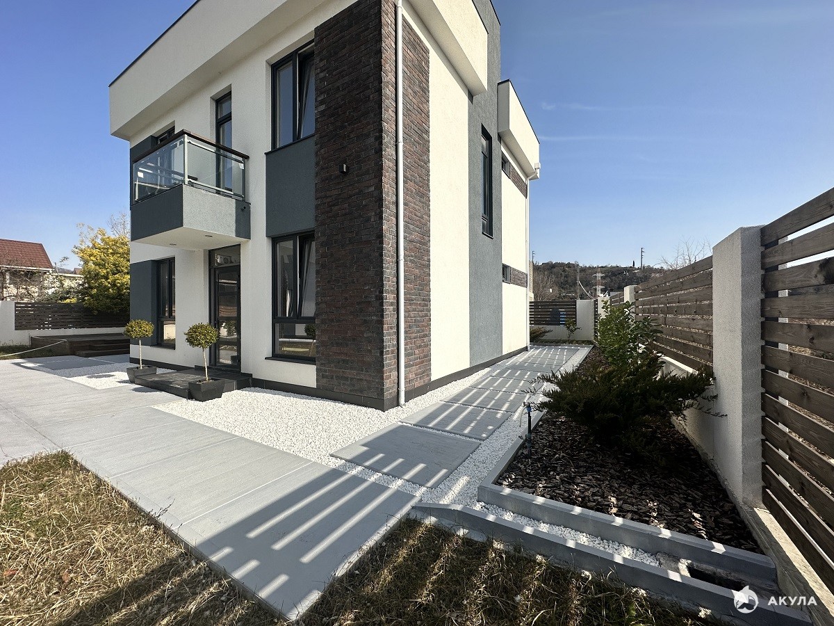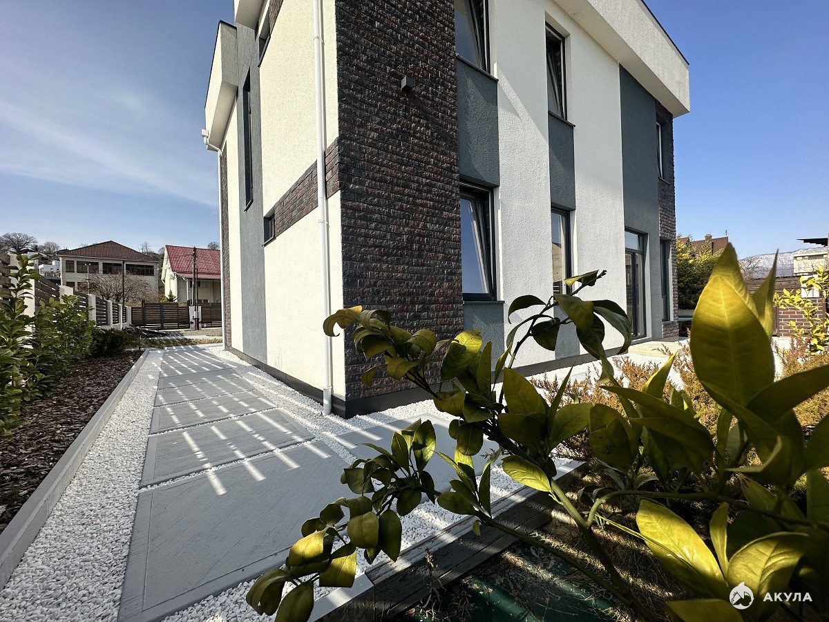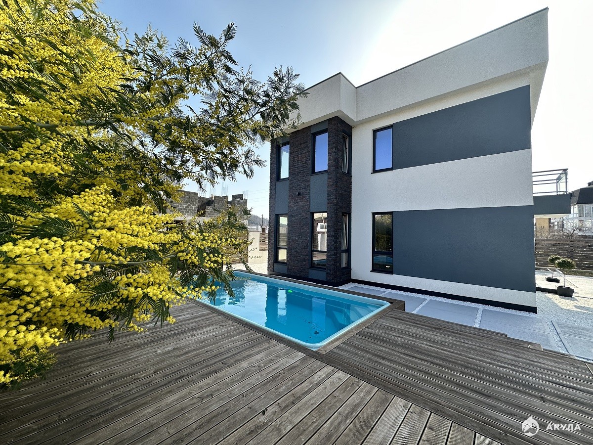 Фасад из качественных современных материалов, выполнено благоустройство, бассейн 6×3, детский уголок, мини сад.