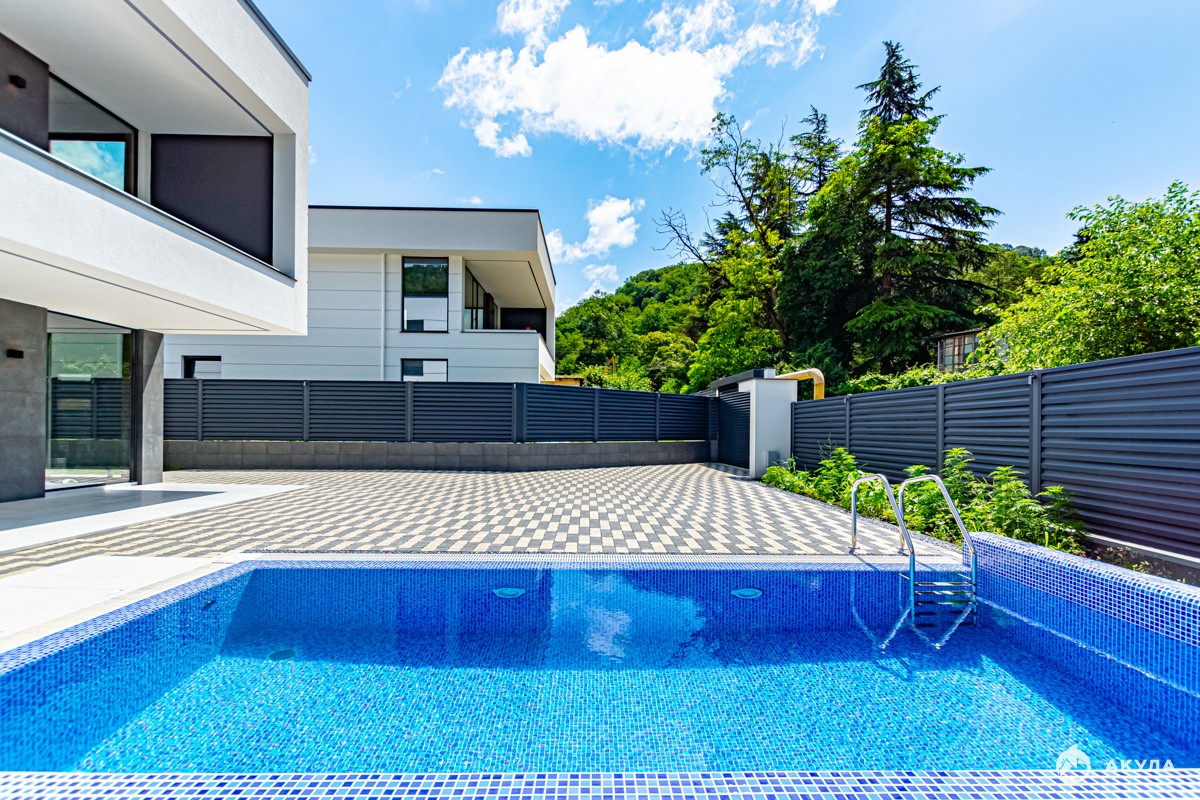 Земельный участок 5 соток. На территории парковка для автомобилей, бассейн и зона отдыха.