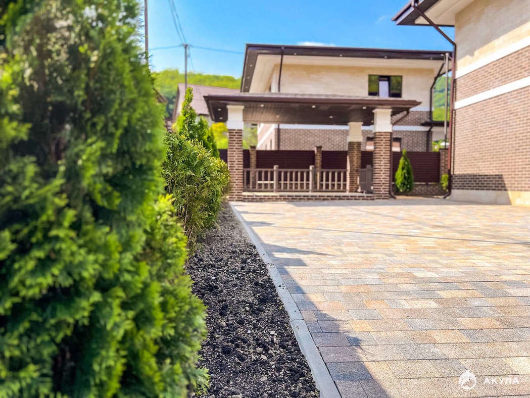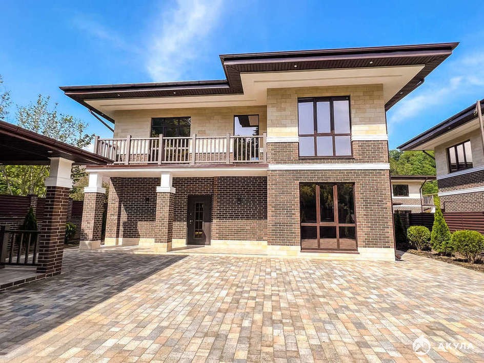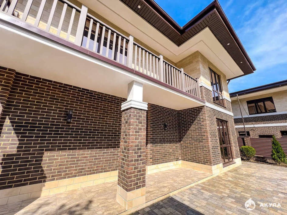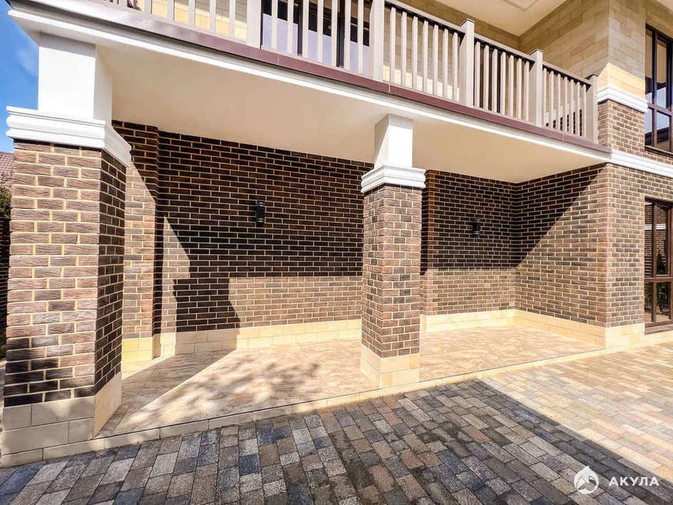 Отделка фасада комбинированная натуральный камень, клинкерный кирпич, декоративные элементы. Ограждение балконов натуральное дерево. большому количеству световых точек дома наполнены естественным светом.