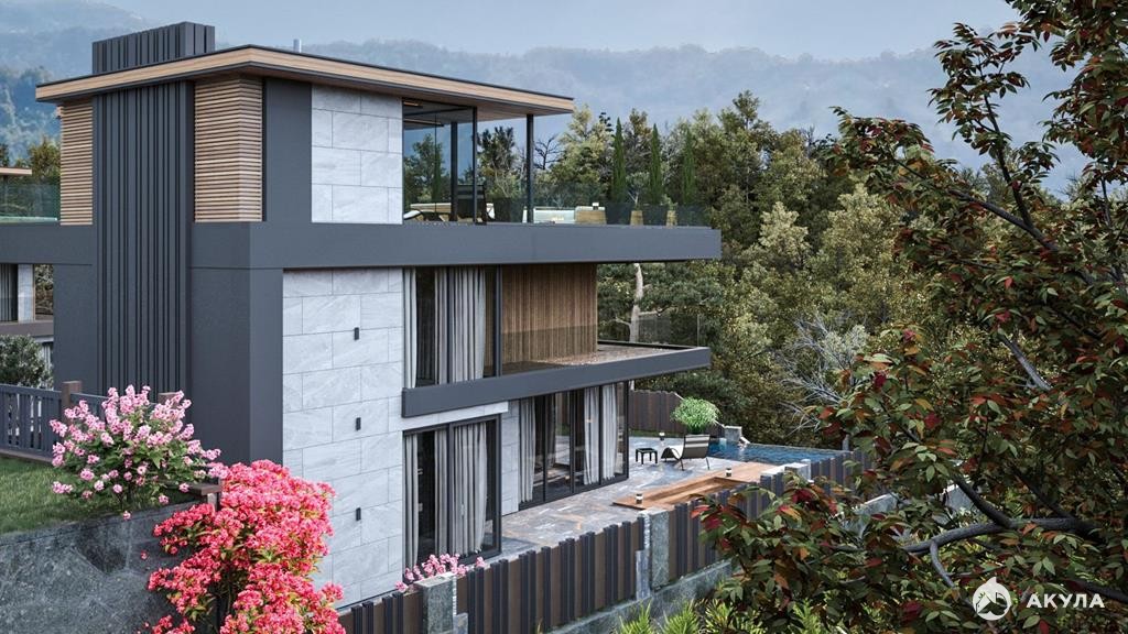 Дом в коттеджном поселке закрытого типа, находится вдали от городской суеты и шума, в окружение реликтового леса и чистейшего горного воздуха и недалеко от моря. КП создан, чтобы наслаждаться комфортной и размеренной жизнью, благодаря расположению, горным пейзажам и продуманным техническим дизайном. Въезжая в коттеджный поселок, вы попадаете в особый мир уюта и умиротворения. Современная практичность и комфорт: Широкие проезды — 5 м. Территория поселка контролируется управляющей компанией, консьерж сервис.
