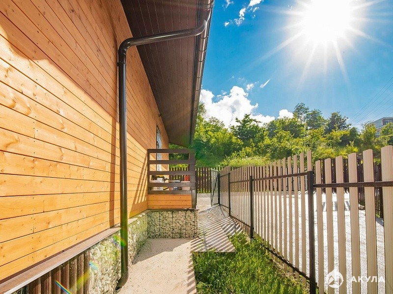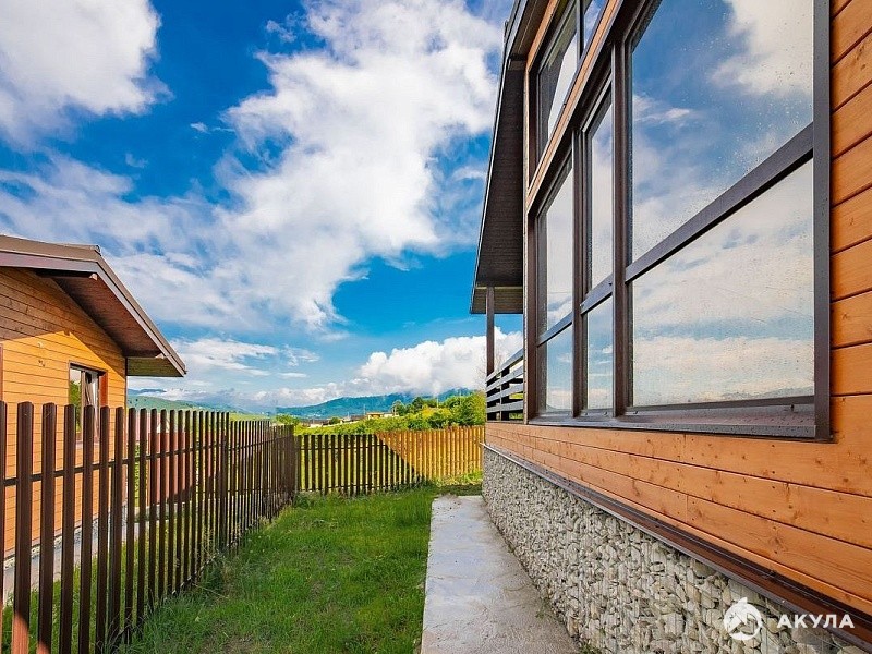 Планировка: Три спальни, сан. узел, кухня — гостиная, просторная терраса с прекрасным видом на горы. Высота потолков от 2, 80 до 3, 50 м. Основание коттеджей: свайное поле - винтовые сваи. В подарок идет внутренний ремонт. Включает все черновые работы: установка перегородок для выделения кухонной зоны, спальных комнат и санузла; на стенах — обои; пол — ламинат; натяжные потолки; входные и межкомнатные двери; в ванной комнате кафель, сан. техника, душевая кабина; в кухне — газовый котел; разводка электропроводки, с установленными розетками и выключателями. Земельный участок огорожен, правильной прямоугольной формы, ровный без уклонов. Категория: Земли населенных пунктов, для индивидуального жилищного строительства. Все коммуникации заведены и подключены, проведен интернет. Дополнительно установлен бойлер и пластиковый накопитель для сбора родниковой воды. Возможна продажа в ипотеку или с рассрочкой платежа.Номер объекта: #5/561547/11901