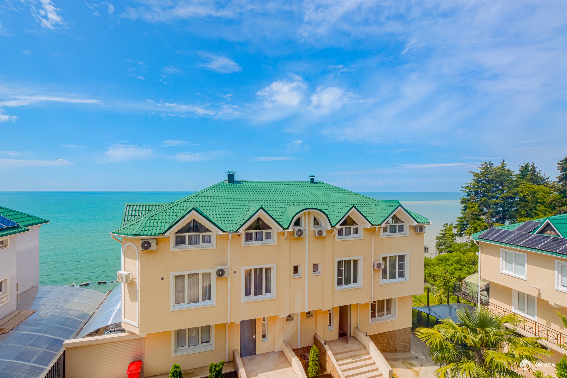 Продается шикарный новый двухэтажный дом в закрытом элитном коттеджном поселке с уникальной локацией на первой береговой линии с собственным выходом на пляж. Шесть комнат с видом на море, два санузла, парковка на четыре автомобиля, сад с мандариновыми деревьями, зона барбекю. В пешей доступности тропа здоровья терренкур, АК Актер Гэлакси. этот дом- идеальное воплощение мечты жизни на море.