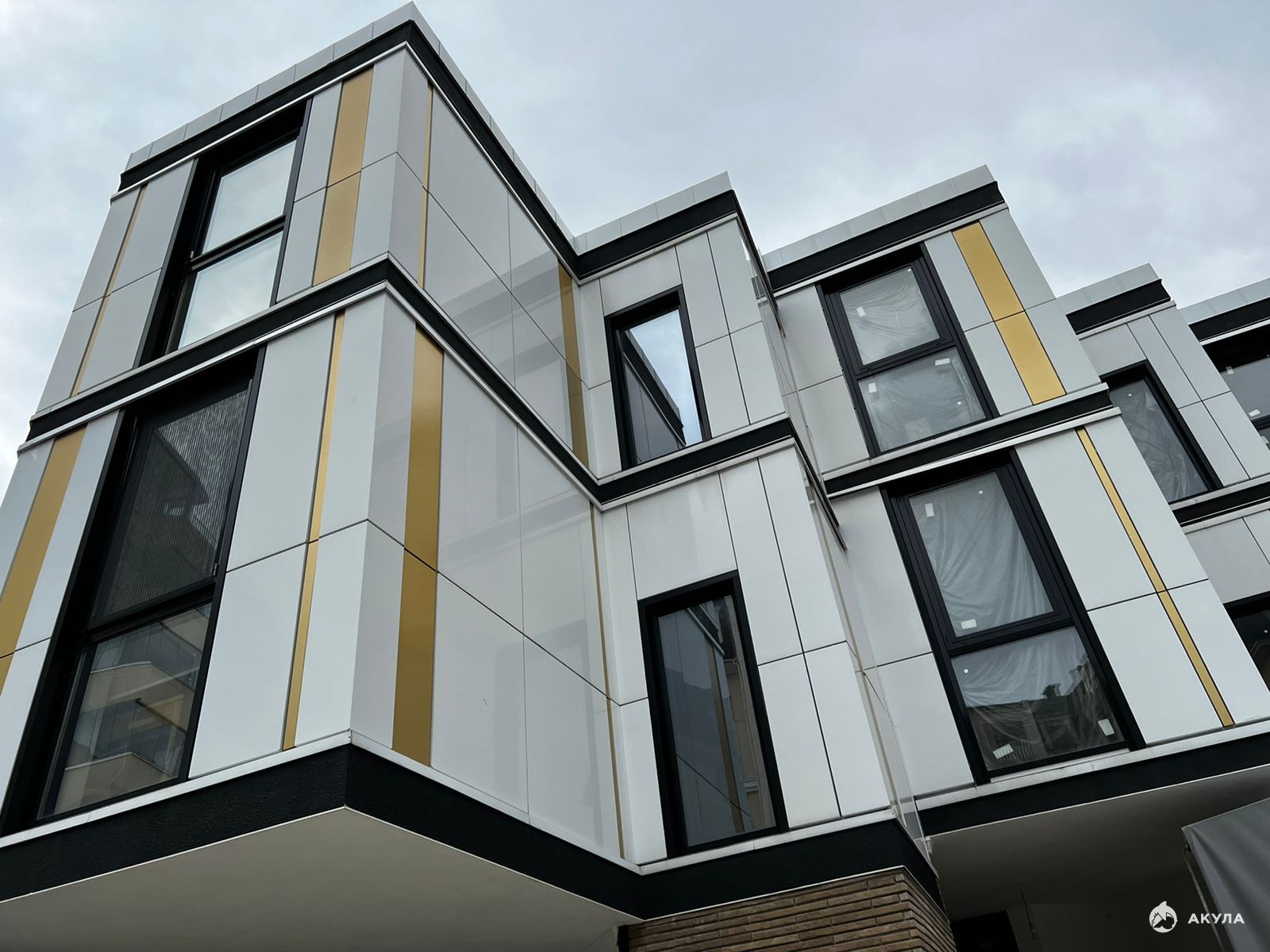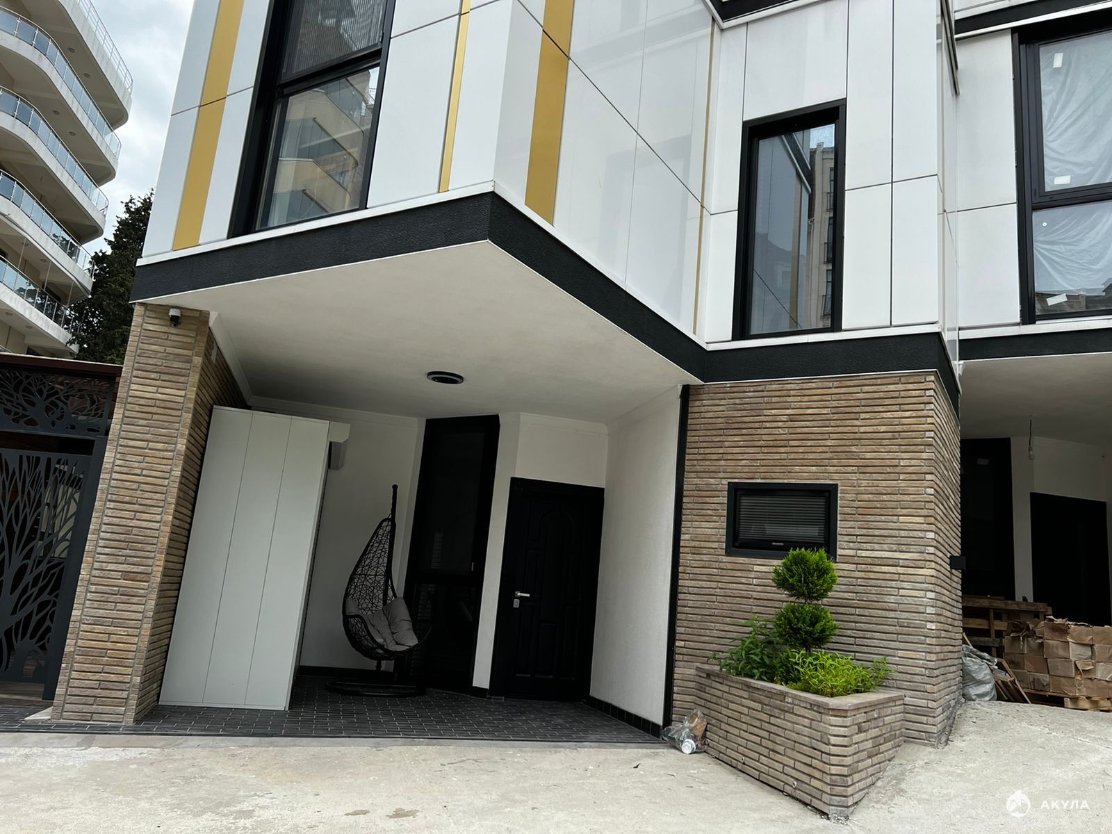Таунхаус бизнес-класса. 3 жилых этажа площадью 137 м2 террасы на 1 и 3 этажах эксплуатируемая кровля ! В общей сложности площадь составляет больше 200 м2. Потолки высотой 3, 40 метра. Центральные коммуникации, есть газ все коммуникации также выведены на террасы. Черновая отделка. Вид на море.