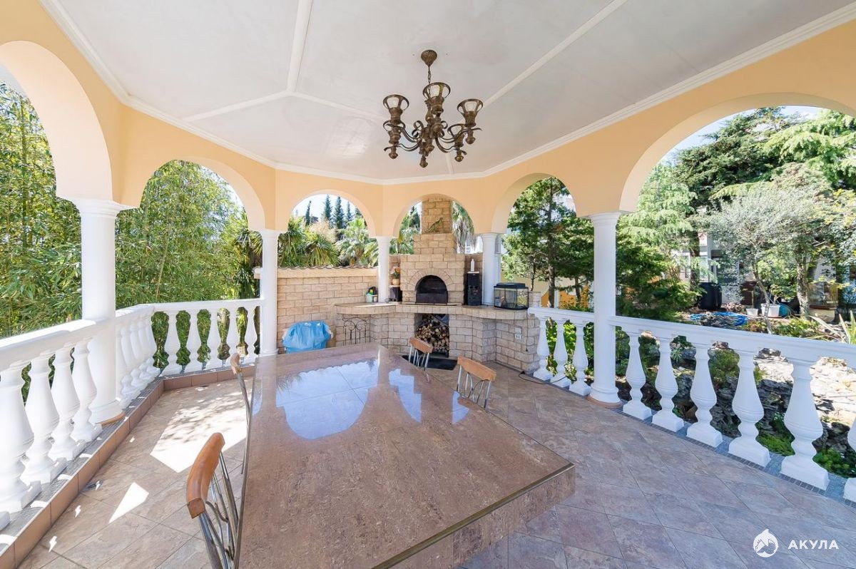 На территории есть бассейн 5х10 метров, беседка и гараж с обустроенным помещением на втором этаже.