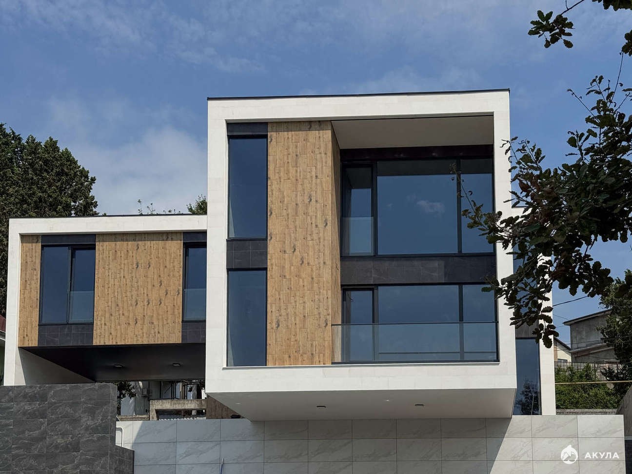 Фасад выполнен из натурального камня Limestone и керамогранита.