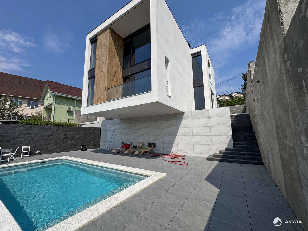 На территории расположен круглогодично подогреваемый бассейн, паркинг с навесом на 2 автомобиля, гостевой паркинг.