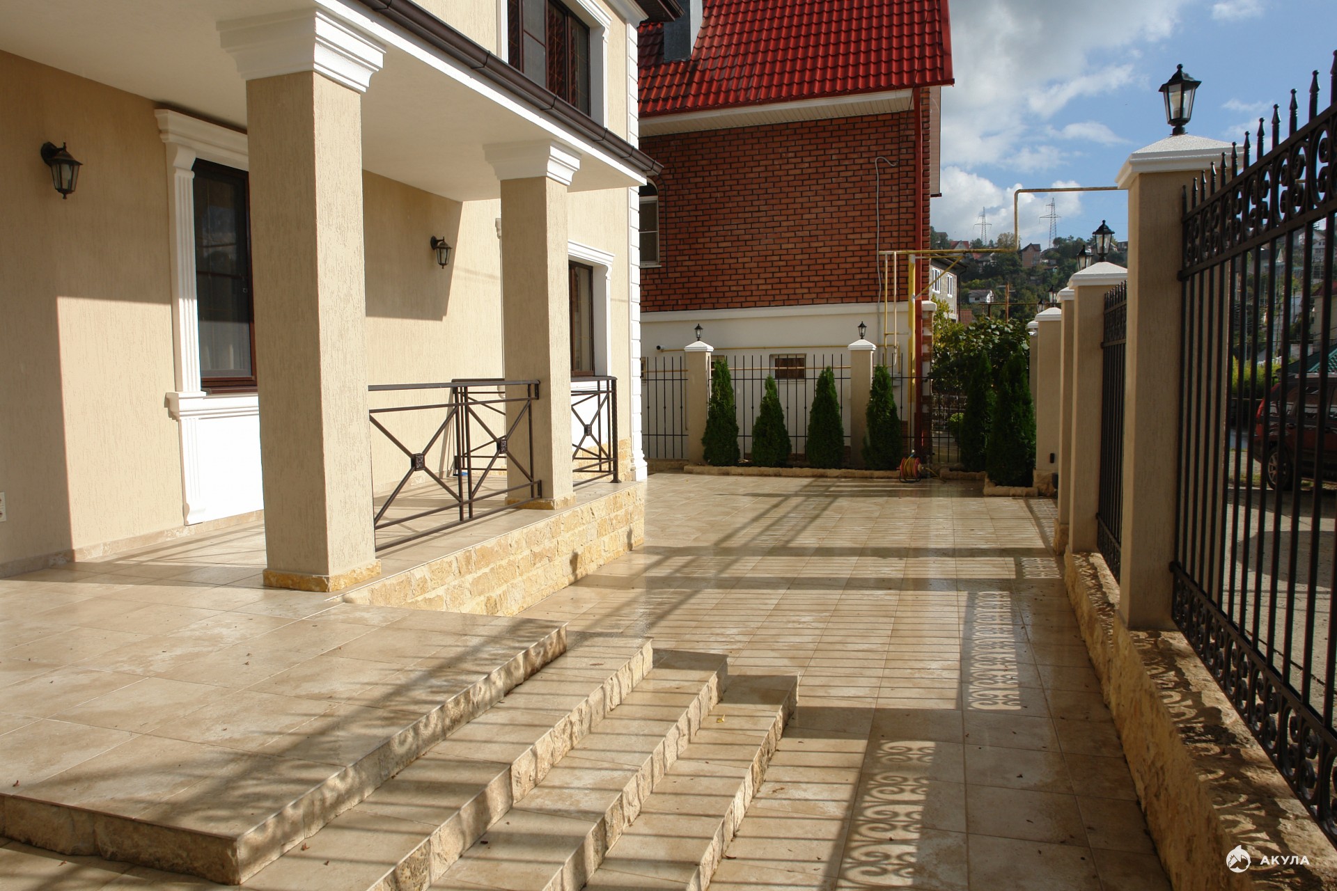 Дом находится на участке 5 соток, оснащен парковкой под три автомобиля, зоной отдыха и ландшафтным дизайном.
