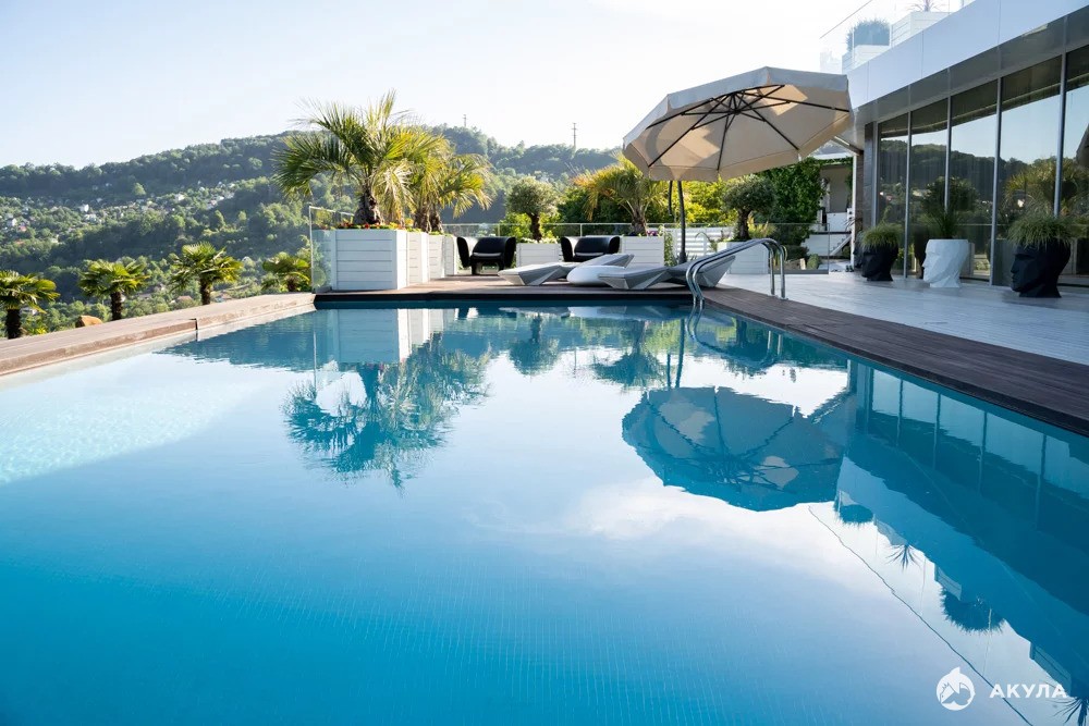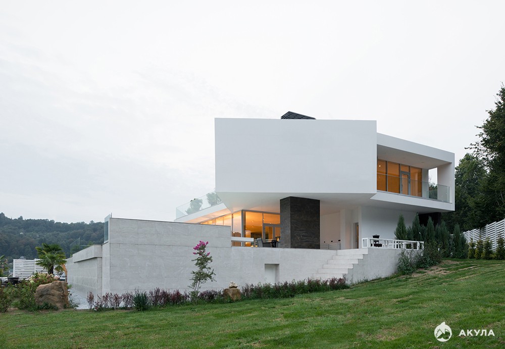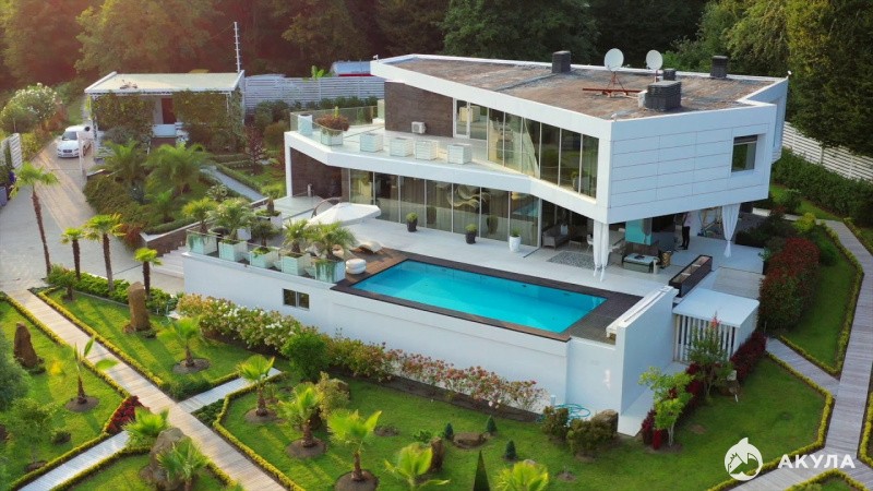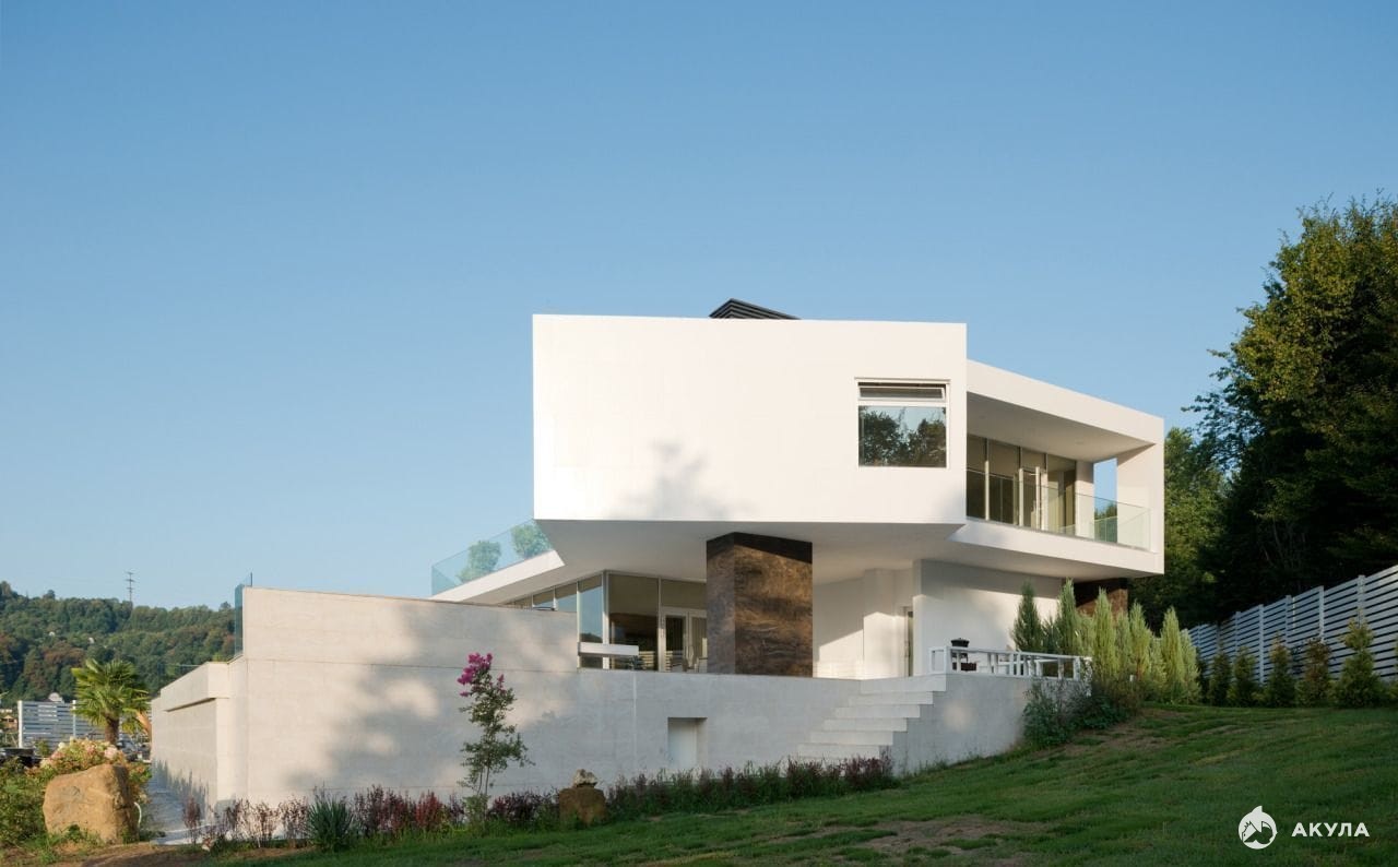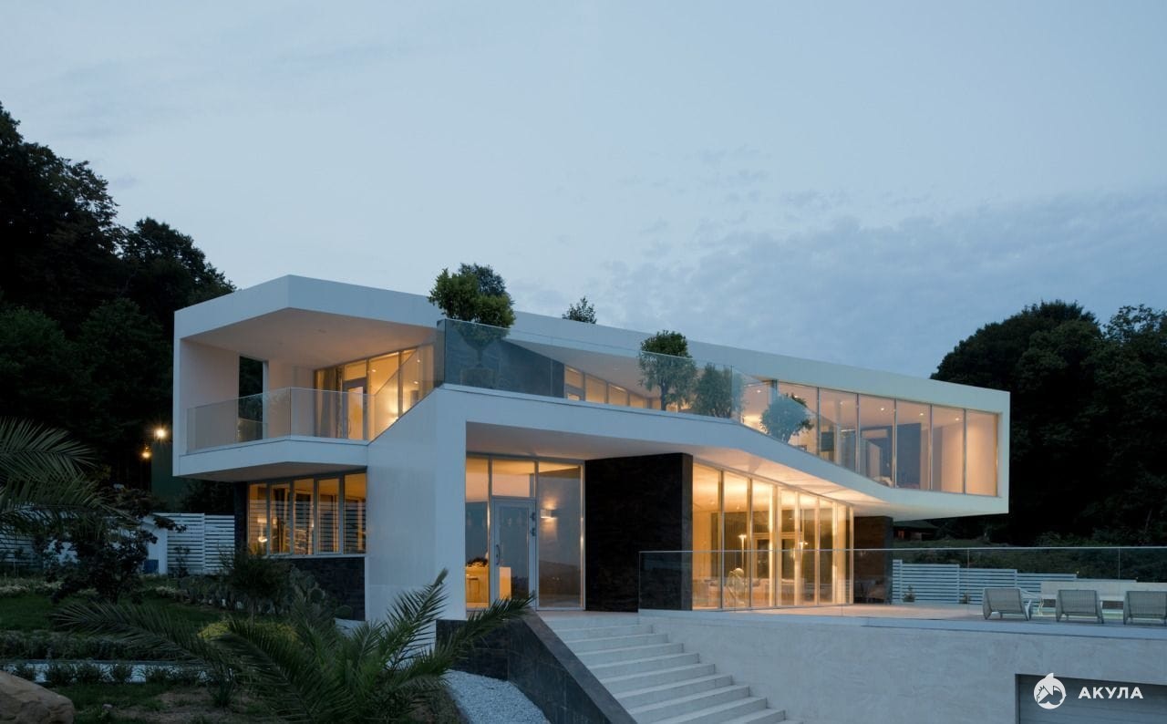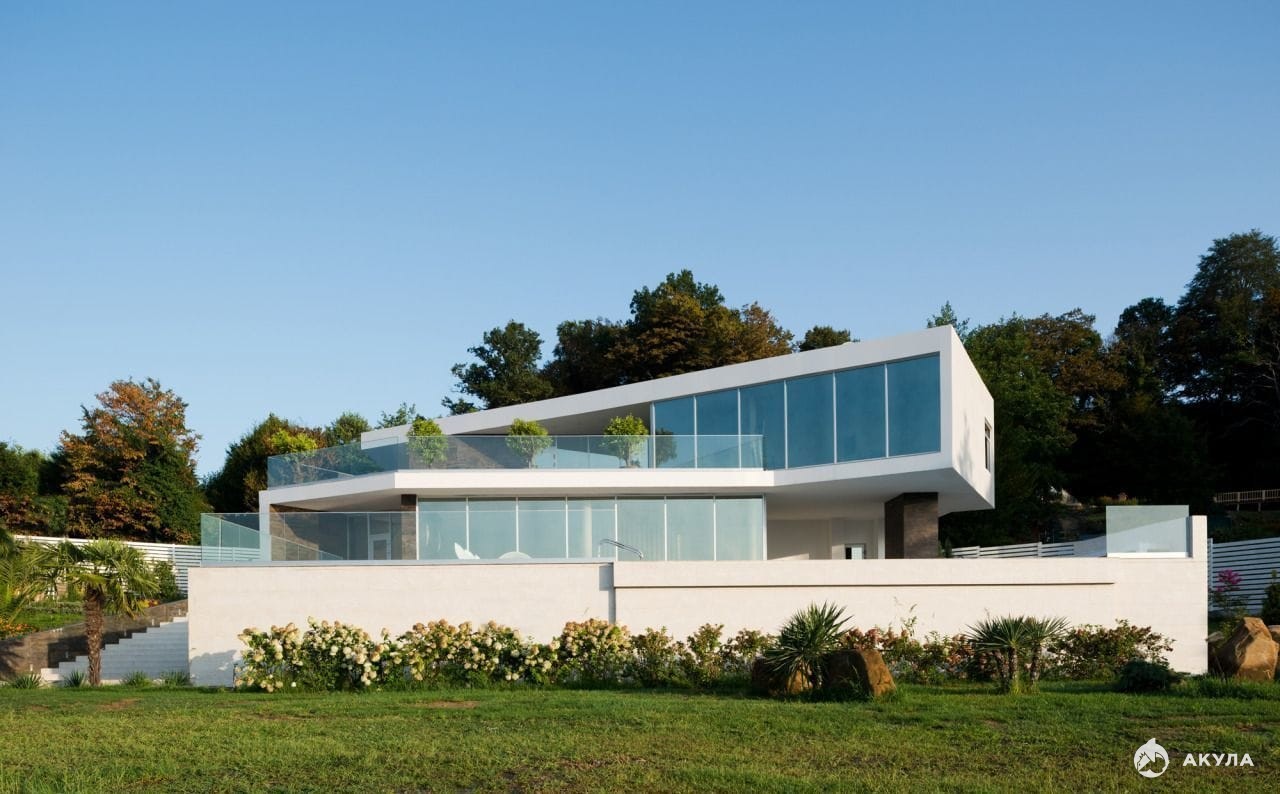 Современная вилла в архитектурном стиле Хай-тек. В окружении гор и национального лесного заповедника Сочи. Вблизи горного ручья.