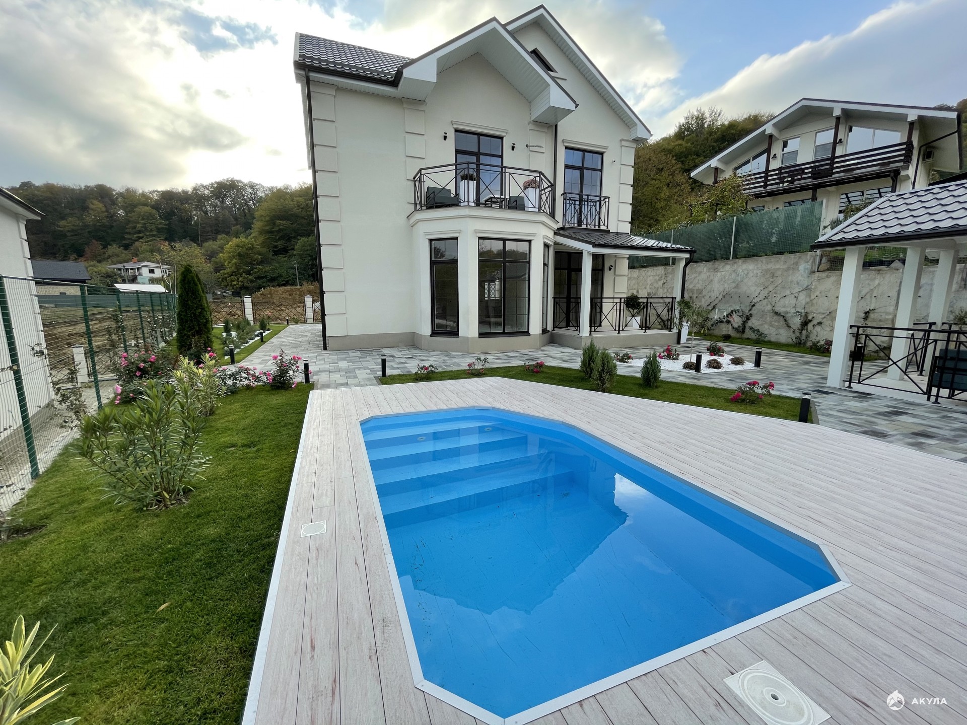 В продаже красивый и стильный дом в новом коттеджном поселке в Хосте.