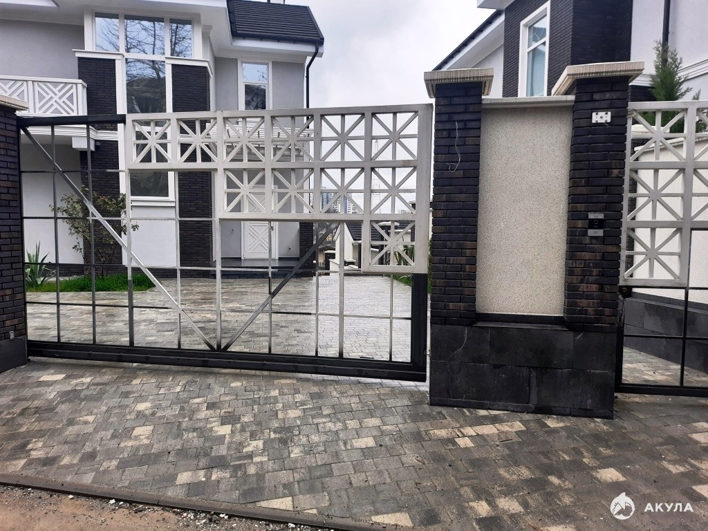 Капитальный забор, выполненный в едином архитектурном стиле, архитектурная подсветка здания, крытая зона барбекю, озеленение, система водополива.