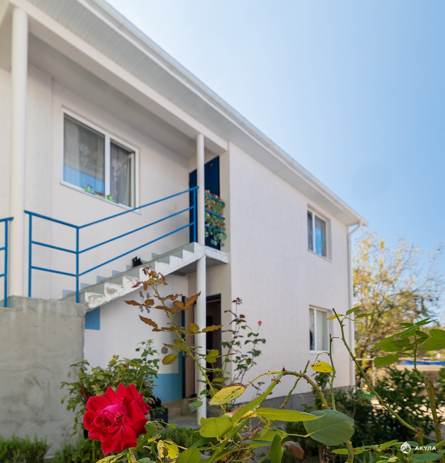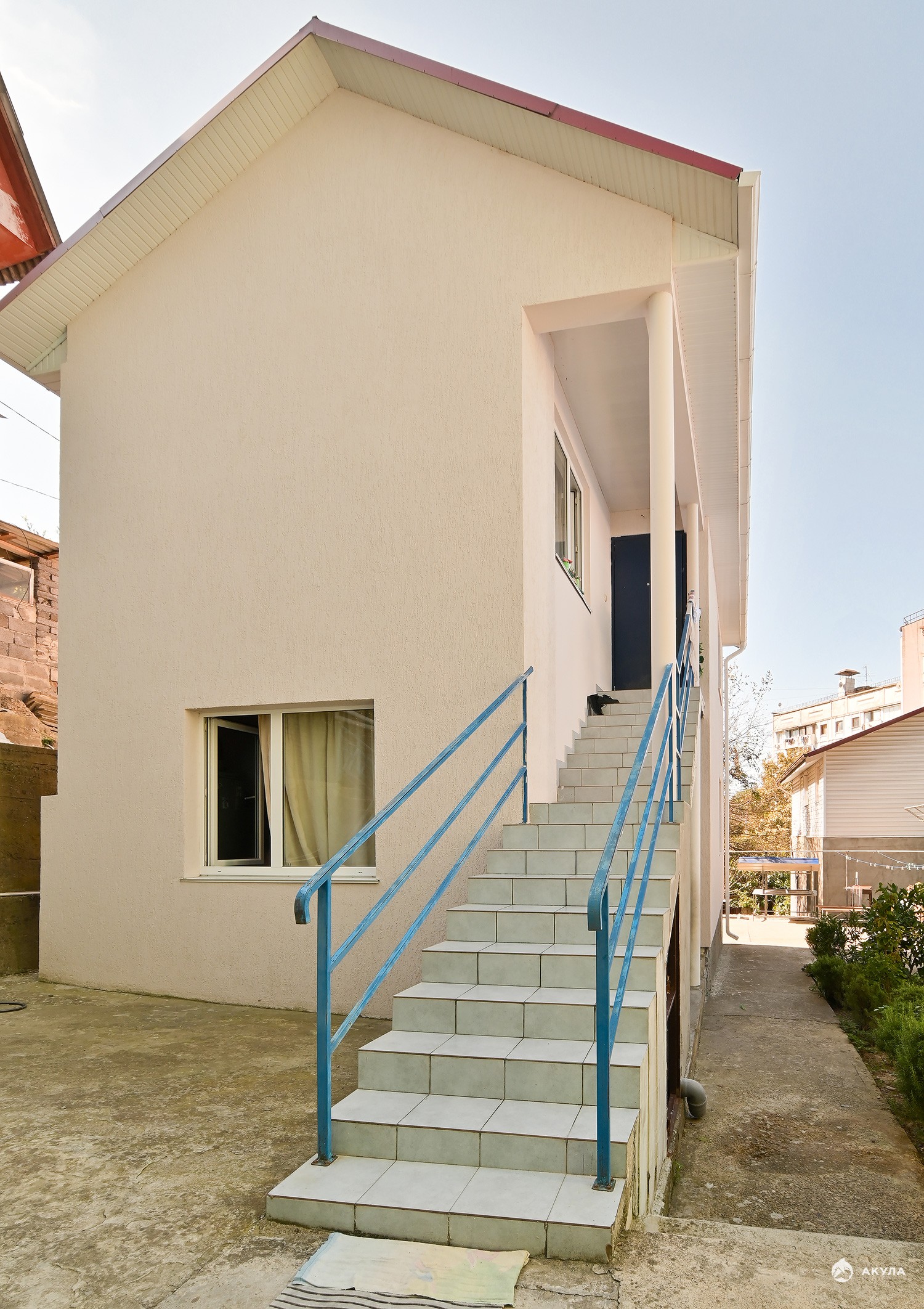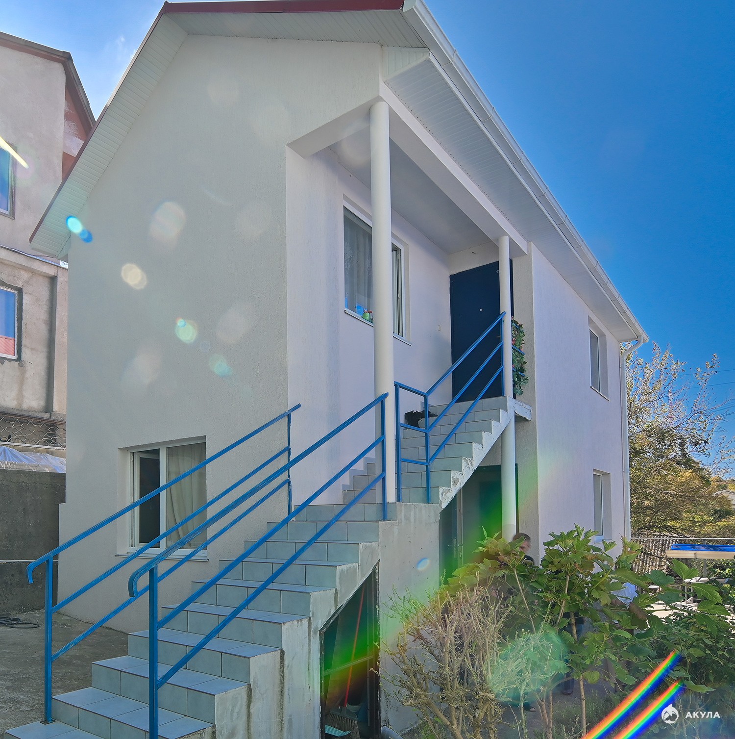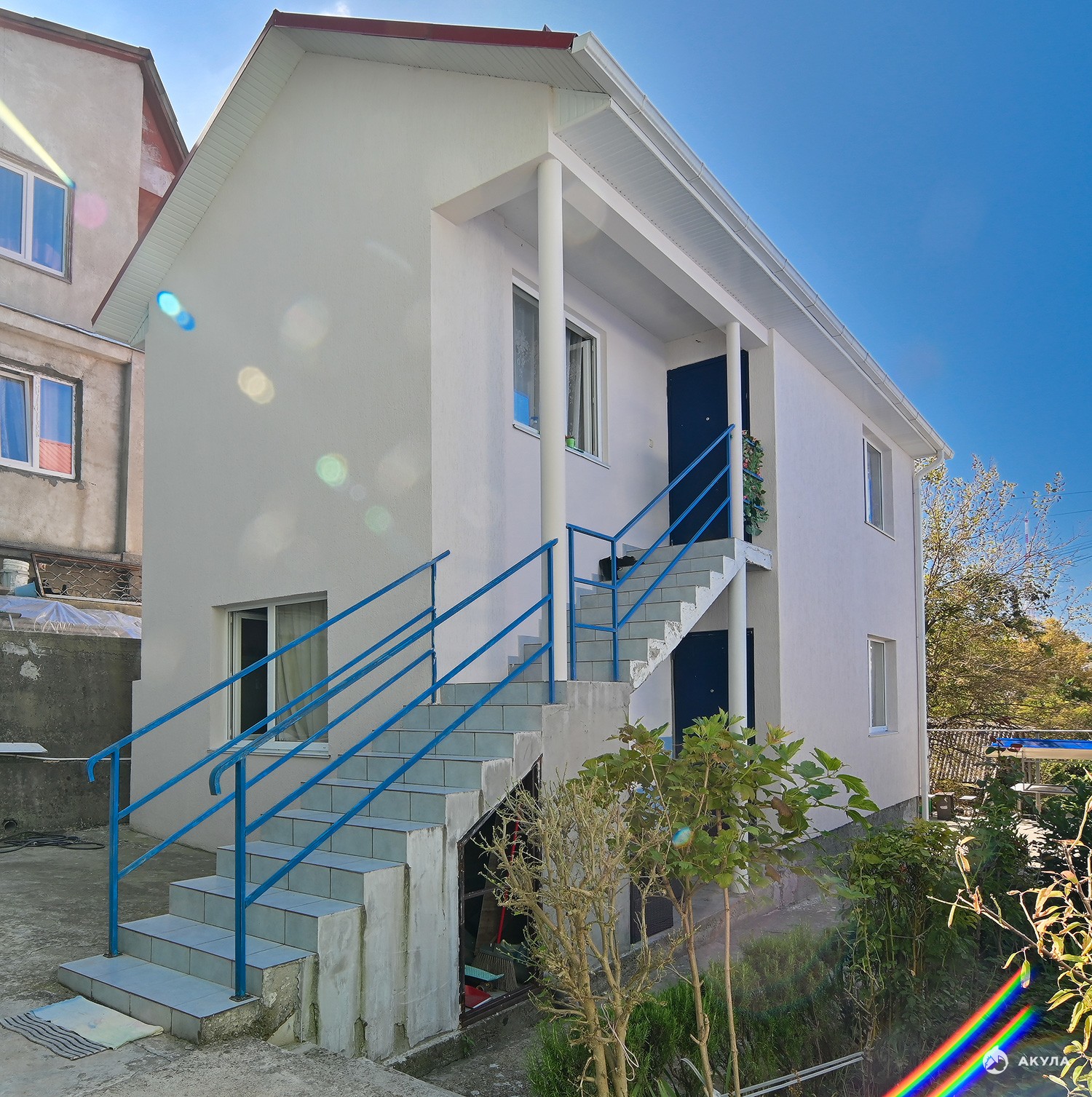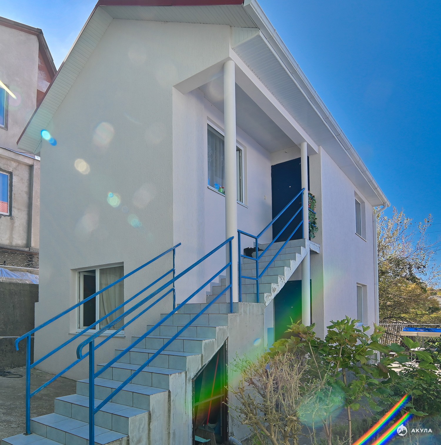 В доме два отдельных входа - на 1 этаже кухня , гостиная, уборная , на 2 этаже 2 спальни и уборная .