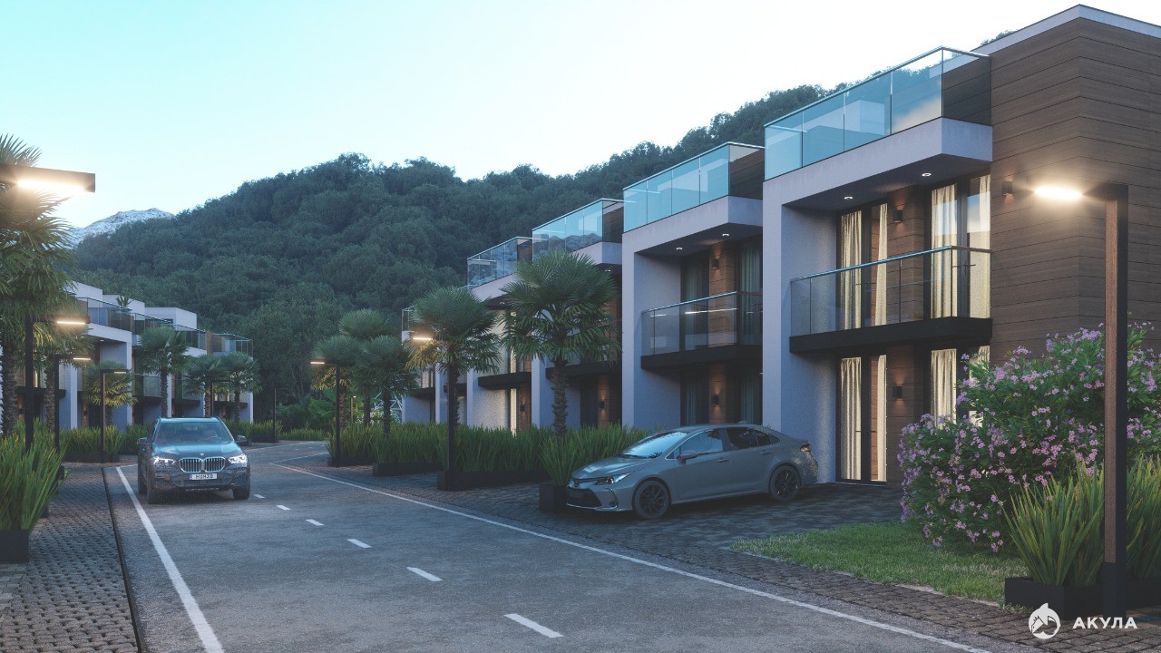 Это элитный городок из таунхаусов расположился в тихом месте Адлерского района города-курорта Сочи. Удобная транспортная доступность, рядом остановки общественного транспорта, рынок, школа, д.сады, супермаркеты.