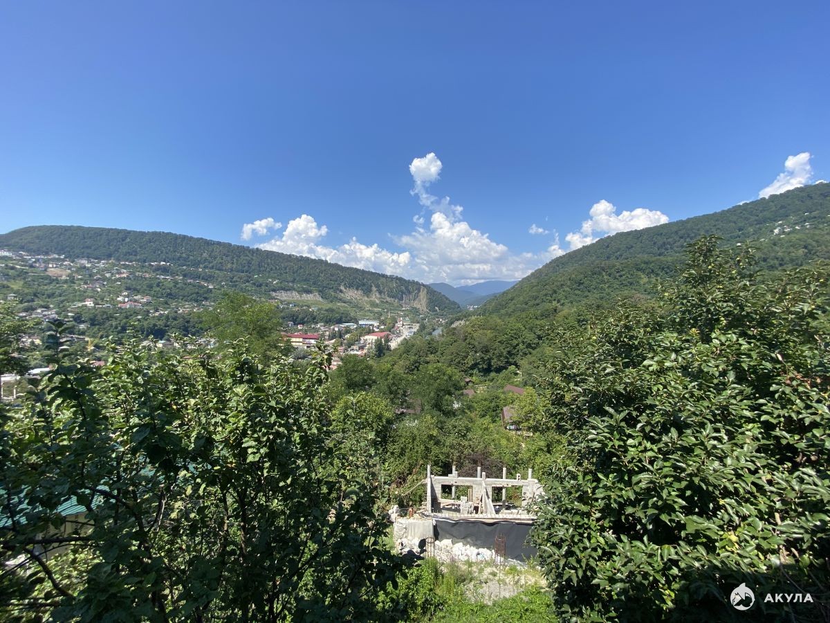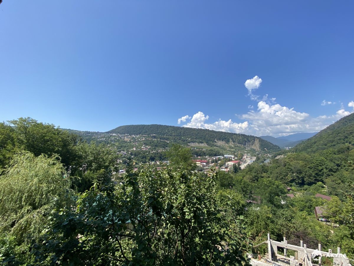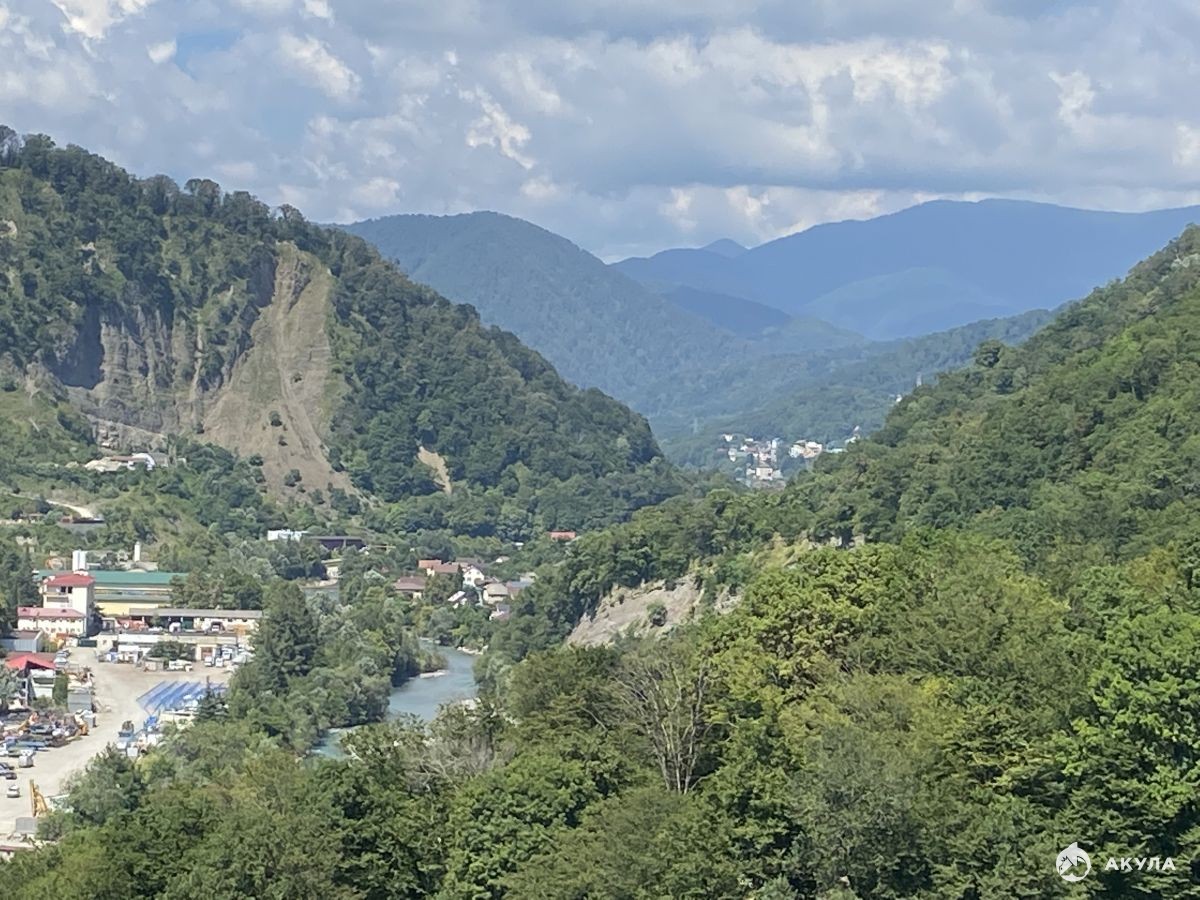 Прекрасный вид на реку и ущелье Кавказских гор. Остановка общественного транспорта в шаговой доступности . Инфраструктура района активно развивается , есть все для комфортной жизни .