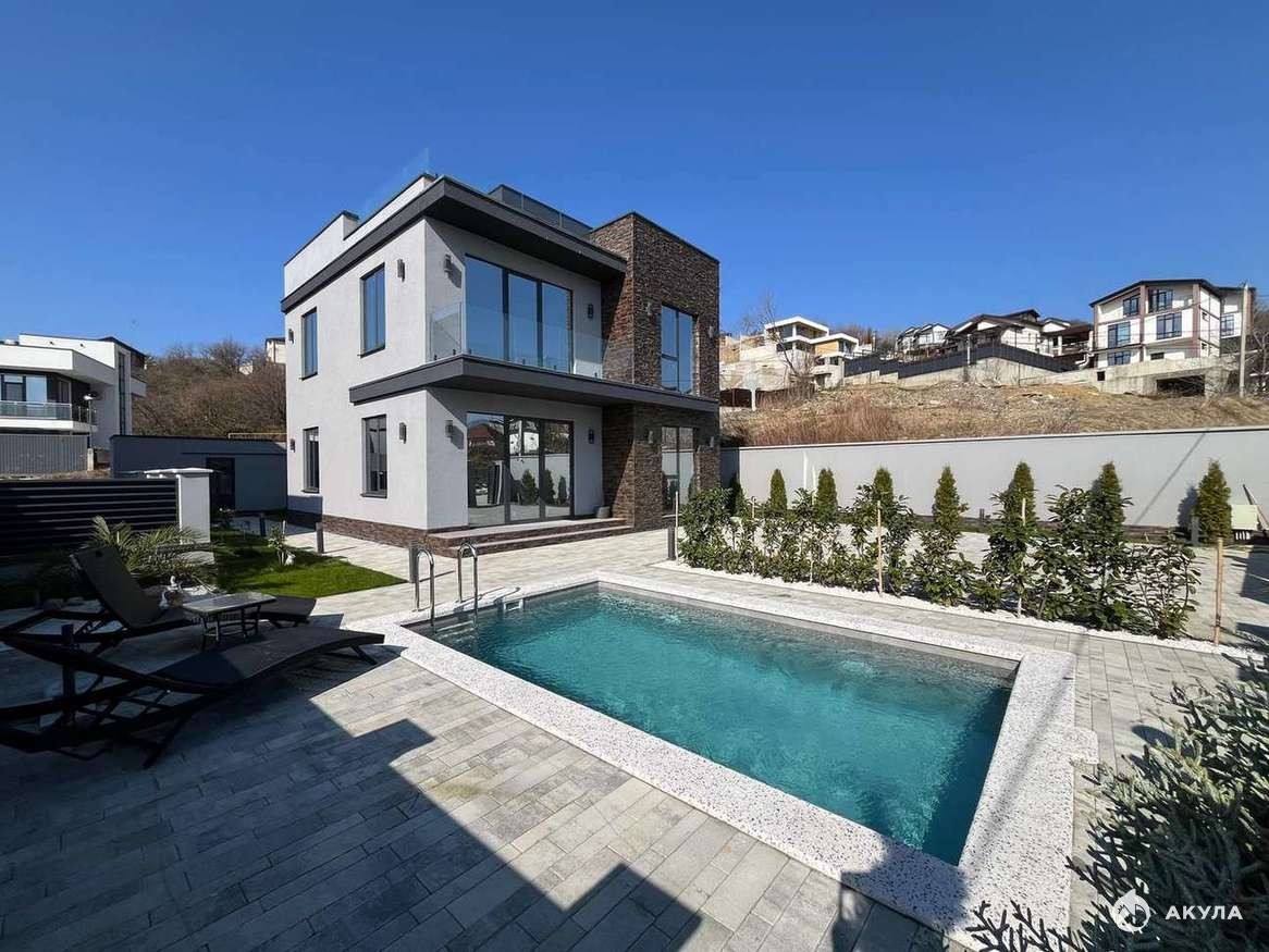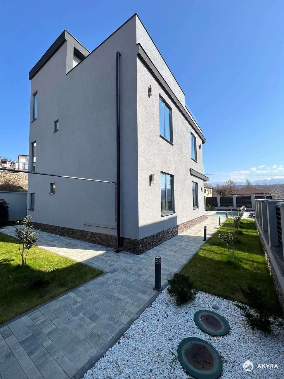 Продаётся современный трехэтажный дом с эксплуатируемой кровлей в стиле Хай-Тек в новом коттеджном поселке (достраивается), дом прекрасно ориентирован - отличный вид на горы, частично на море.