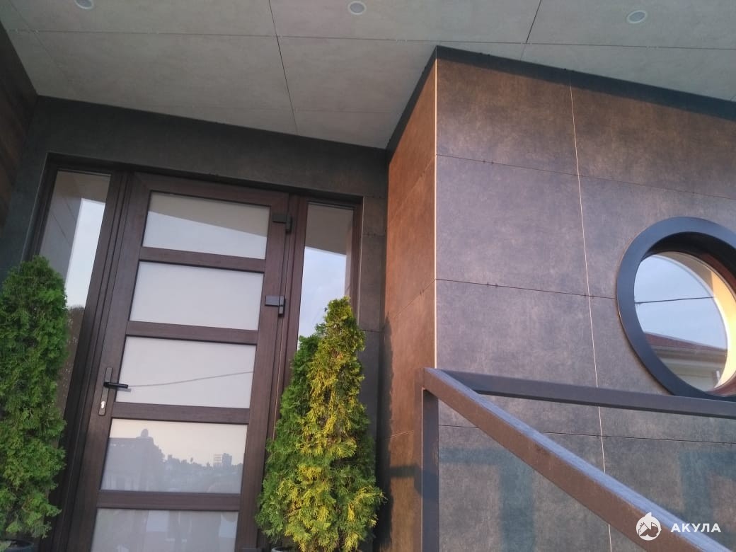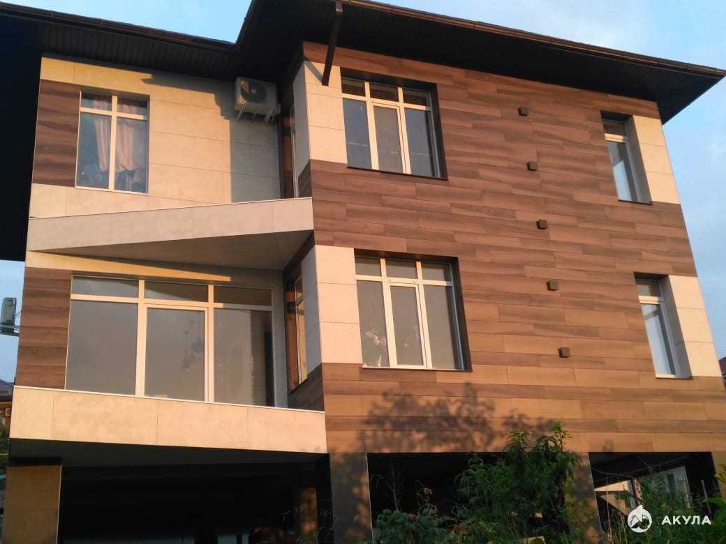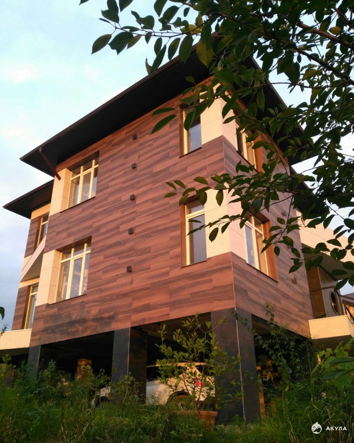 Внешняя отделка дома выполнена в современном стиле эко-минимализм, по технологии навесного вентилируемого фасада. Используется: