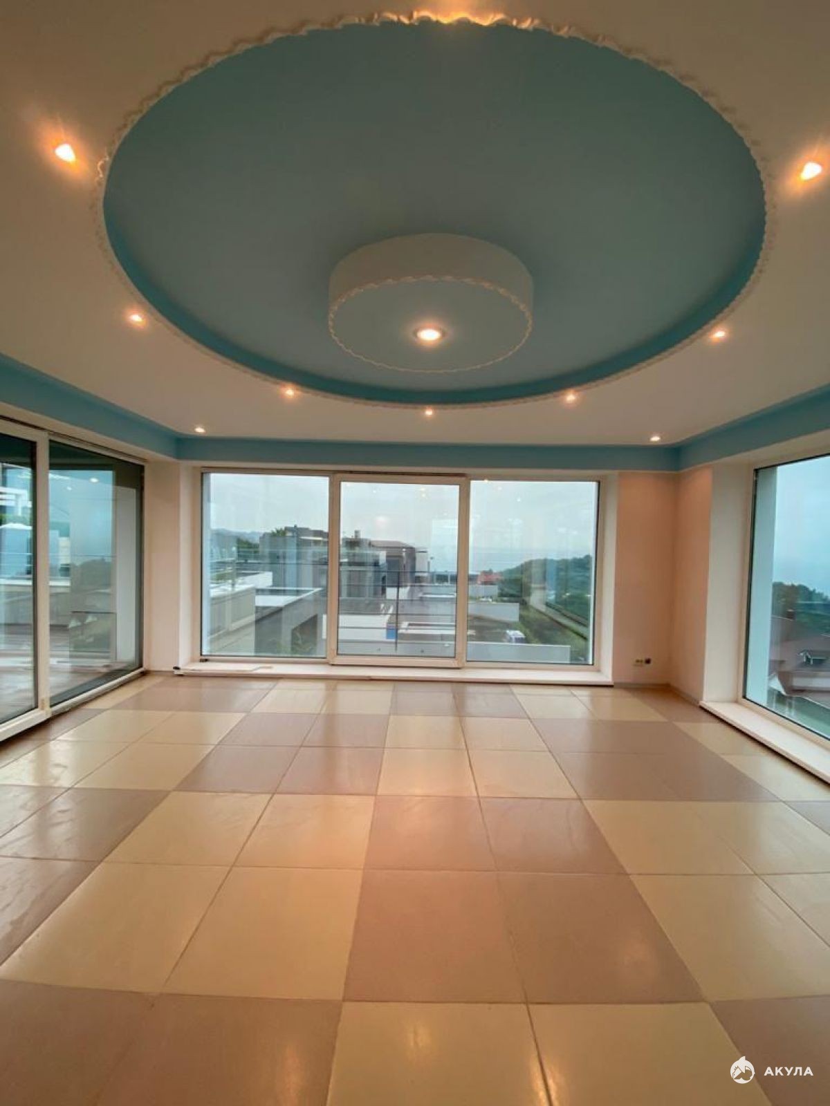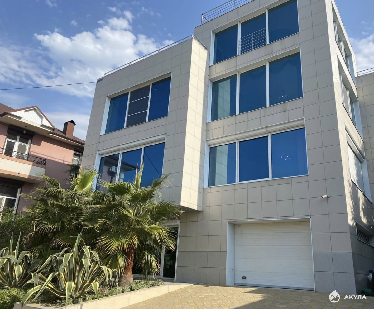 Продается дом в КТ "Ручей Видный" 603 м2 в стиле галереи с панорамными окнами и просторными гостиными на каждом этаже. Закрытая круглосуточная охраняемая территория из 5 современных вилл. Видеонаблюдение покрывает всю территорию участка. Несколько тревожных кнопок (Росгвардия) и все необходимое оборудование по охране дома и территории. Этот дом имеет приватную локацию в отличиe от других домов. Полностью внутренняя отделка спроектирована, ручная работа известного грузинского дизайнера Тамаза Минджия. Большая территория, на манер джунглей ухоженная и взрощенная профессиональным садовником. Система автополива по всему участку. Плодоносящий сад, огромные субтропические деревья, кустарники и цветы - все дополняет общую формулу необычного стиля и дизайна пространства. Гараж на 1 авто и 8 машиномест у дома. Количество спален 4 (возможность перепланировки и увеличения до 8 спален). Необычный 4 этаж сделанный почти полностью из стекла наверняка оценят все любители прекрасного, ведь отсюда открывается невероятный вид на панораму моря и Адлер с олимпийскими объектами. Есть возможность подняться еще выше - на крышу 4-го этажа, где просто захватывает дух на открытом воздухе. Вентилируемый фасад, представляет собой термос ( летом прохладно, зимой тепло). Автоматические откидные ворота и гараж с автоматическими воротами. Бассейн 11 на 2, 6м. Этот дом подойдет тому, кто ценит искусство, кто захочет дать этим стенам свое видение прекрасного, повесить на них свои картины и наслаждаться уникальностью локации с бескрайним горизонтом моря.