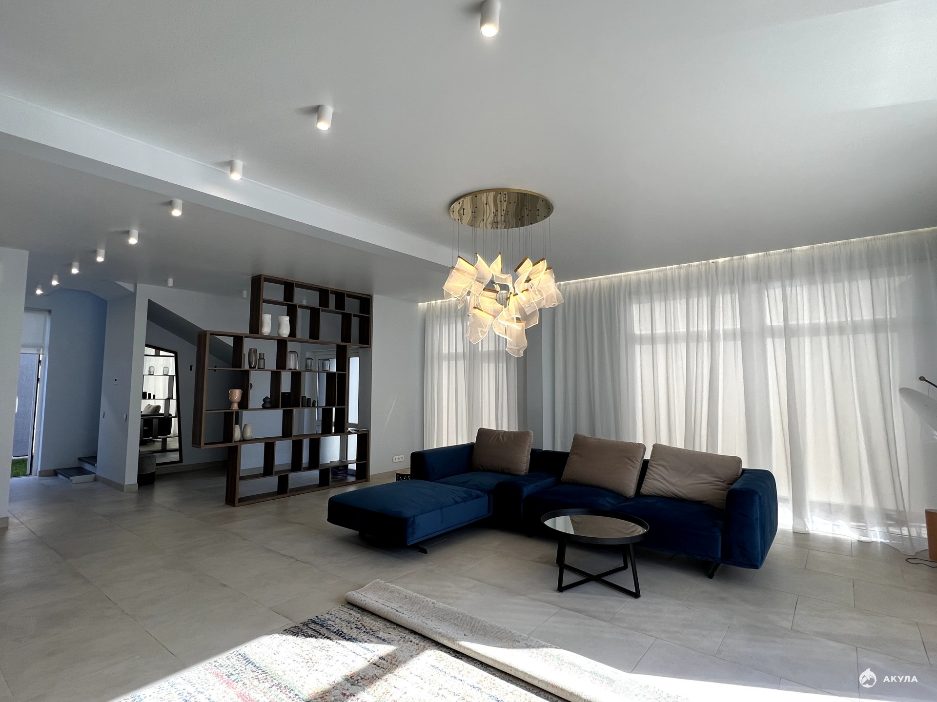 Фундамент: железобетонный монолитный армированный ростверк H=600 мм на восьми буронабивных сваях D530. Ростверк связан с плитой перекрытия H=200 мм. в уровне пола первого этажа. Монолитный каркас с заполнением стен керамзитным блоком. Высокие потолки 3 м., витражные высококачественные алюминиевые окна Алнео ALT65, стеклопакеты: 32 мм 6Титан Закалка/20/6М1, форточки: 5-ти камерный ПВХ профиль Rehau шириной 70 мм.