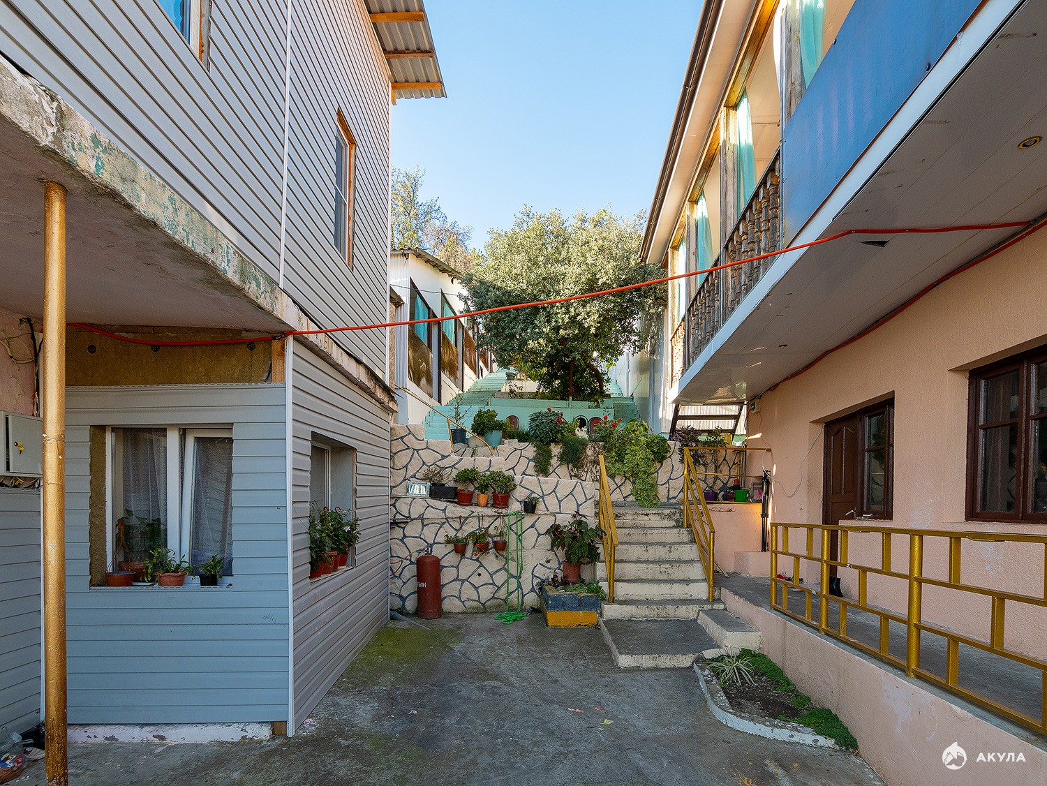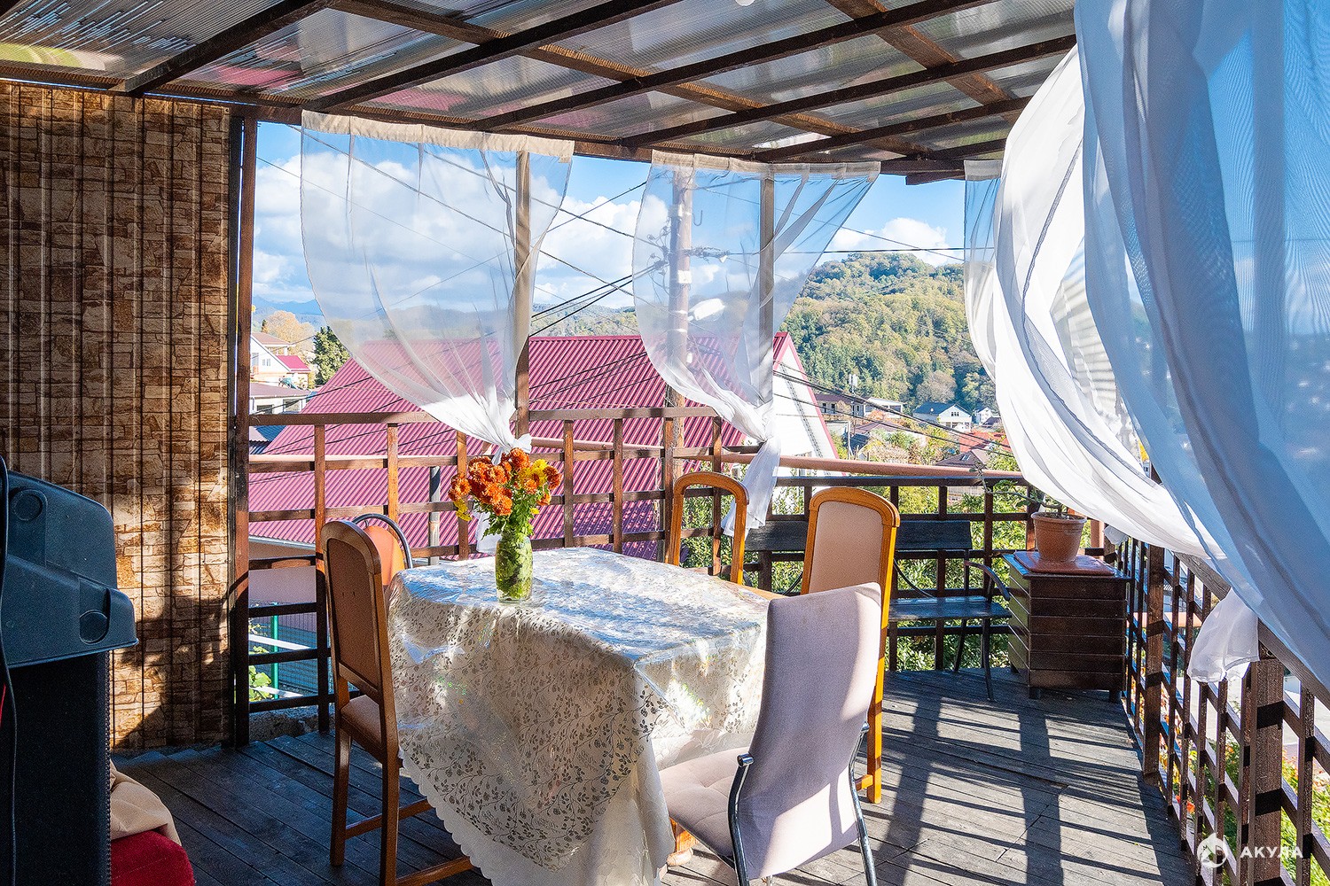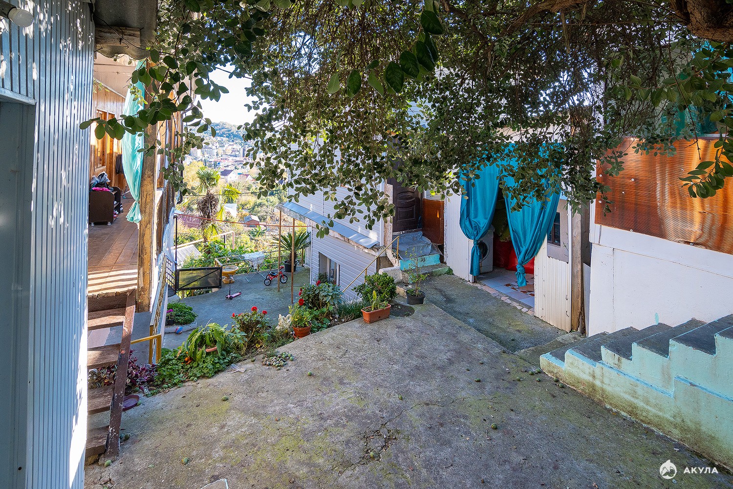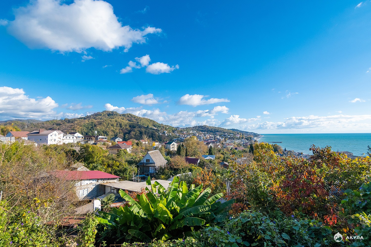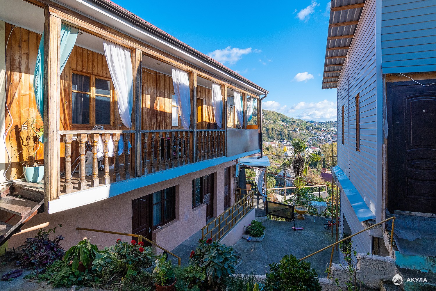 Это легендарный дом со своей историей, именно здесь в 1981 году снимался фильм Будьте моим мужем с Еленой Прокловой и Андреем Мироновым. Дом расположен на возвышенности с потрясающим видом на море и курортный поселок Лоо. До моря 5-7 минут. Рядом находятся продуктовые магазины, рынок, столовая, кафе, остановка. На территории гостевого дома Вас ждет действительно райский отдых, Вы забудете о городской суете и погрузитесь в гармонию и уют под пение птиц в окружении пальм и других экзотических, тропических растений.