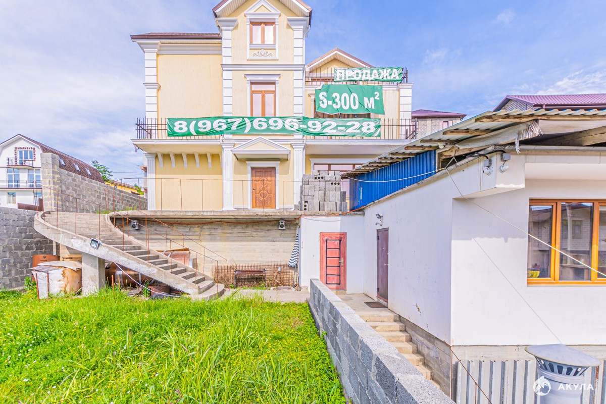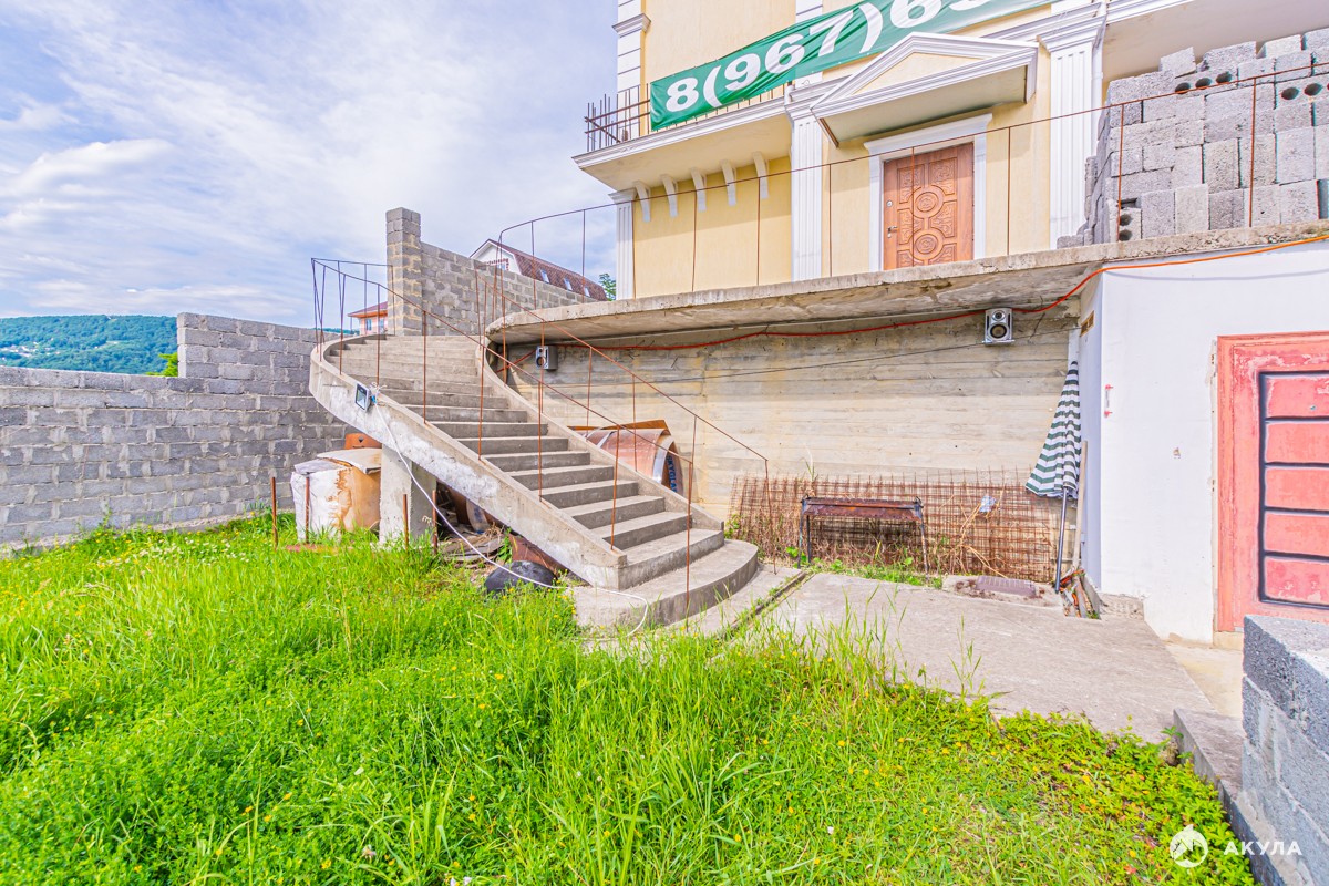 Капитальное домовладение. Дом 311 кв.м. на участке 6 соток. Гостевой дом 50 кв.м. Молодой, развивающийся коттеджный поселок. Удобное расположение, граничит с двумя районами города, до центра Сочи 15 минут на автомобиле. Грамотная планировка дома, включает в себя большую кухню-гостиную на первом этаже, гостевую спальню, гардероб, санузел, подсобное помещение и постирочную. На втором и третьем этаже расположены еще 5 спален, гардеробная и по одной ванной комнате. Кабинет со своей большой террасой находится тоже находится на третьем этаже. Из каждой спальни есть свой выход на балкон. Объект строился капитально, качество строения не передаст ни одна фотография. Частично выполнена предчистовая отделка. Коммуникации центральные, ЛОС - септик, свет - 15 кВт, газ по границе участка. Документы полностью готовы к сделке. Дополнительная информация - по запросу. Звоните.