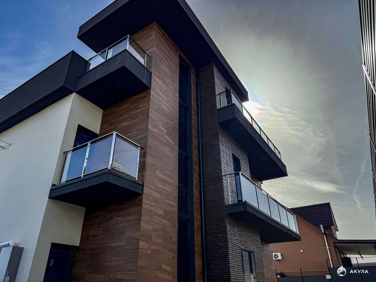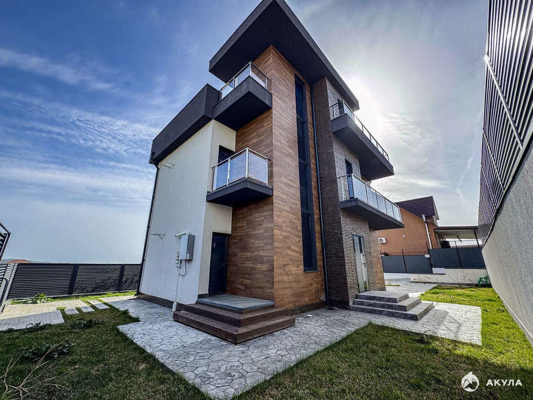 Планировка - 1 этаж - кухня-гостиная, спальня, санузел, котельная, 2 этаж - три спальни, каждая с индивидуальным балконом, санузел.