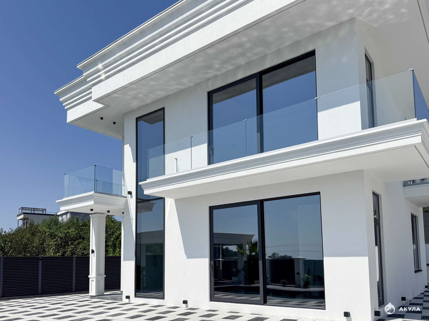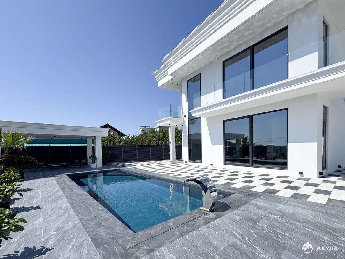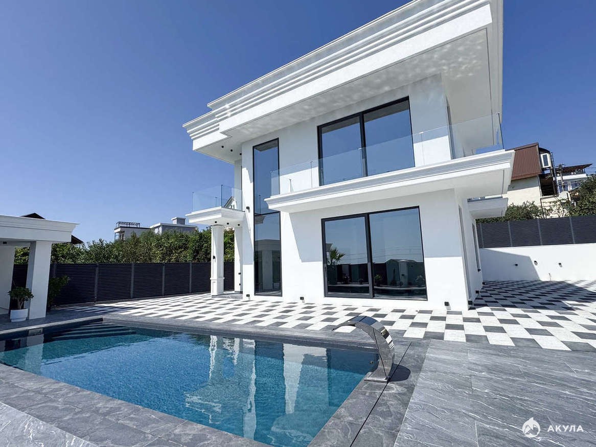 Просторная вилла 280 кв.м. с высокими потолками и алюминиевым панорамным остеклением с потрясающим видом на море.