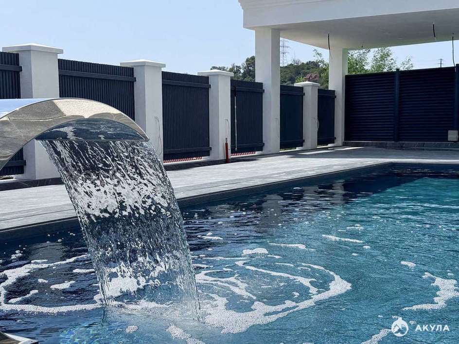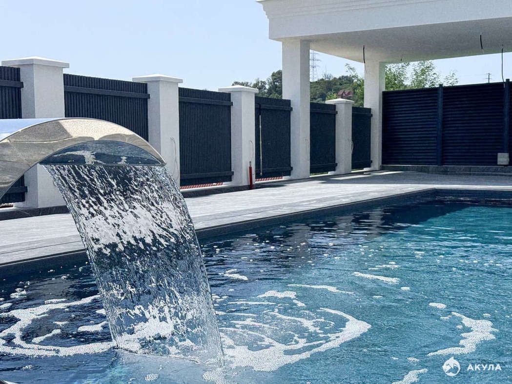 На территории виллы установлен большой 10ти метровый круглогодично подогреваемый бассейн с водными аттракционами и подсветкой, тропический душ, навес для зоны отдыха и зоны барбекю. Выполнено ландшафтное озеленение с красивыми растениями.