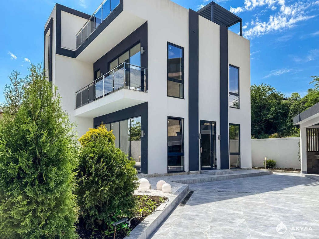 Внутри выполнена чистовая отделка. Планировка: 1 этаж: кухня-гостиная, санузел, котельная, 2 этаж - три спальни, санузел. Из окон открывается вид на горы и море.