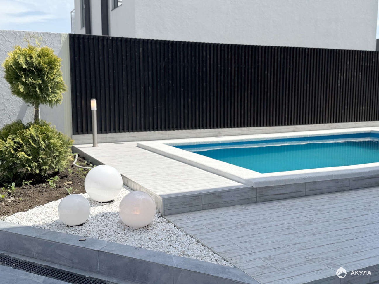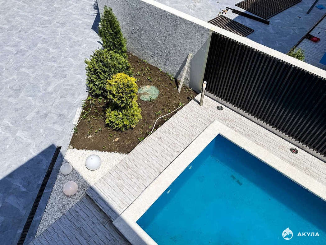 На территории установлен круглогодично-подогреваемый бассейн, ландшафтное озеленение, подсветка, мангальная зона со всем оборудованием.