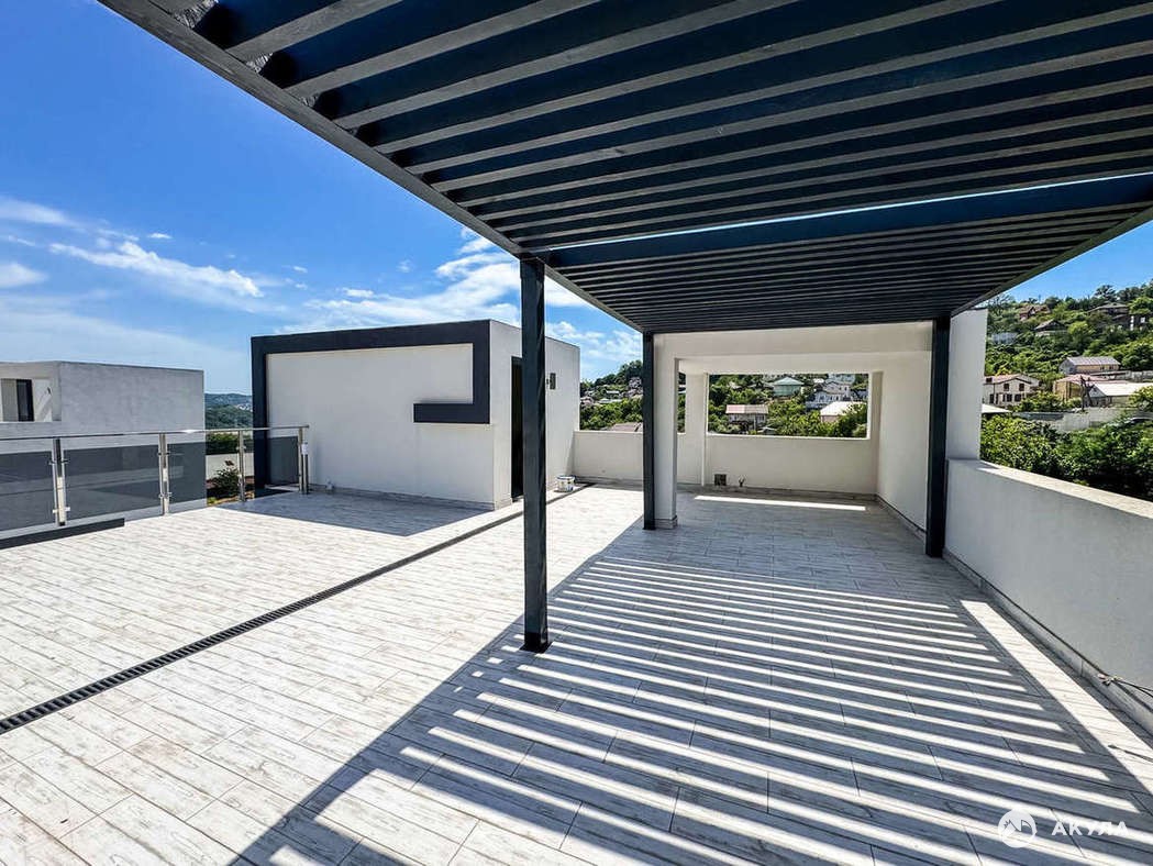 Кровля - эксплуатируемая, установлена пергола. Кровля станет идеальным местом для оборудования лаунж зоны.