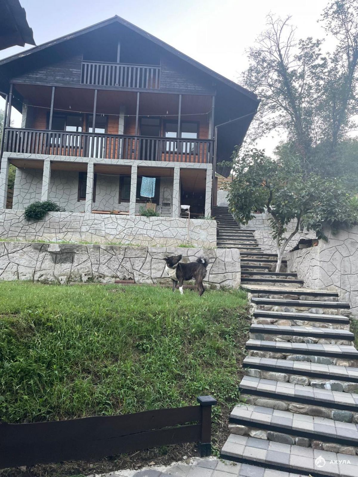 Двор разделен на несколько зон, наверху есть просторная парковка для двух машин.Номер объекта: #5/602406/11901